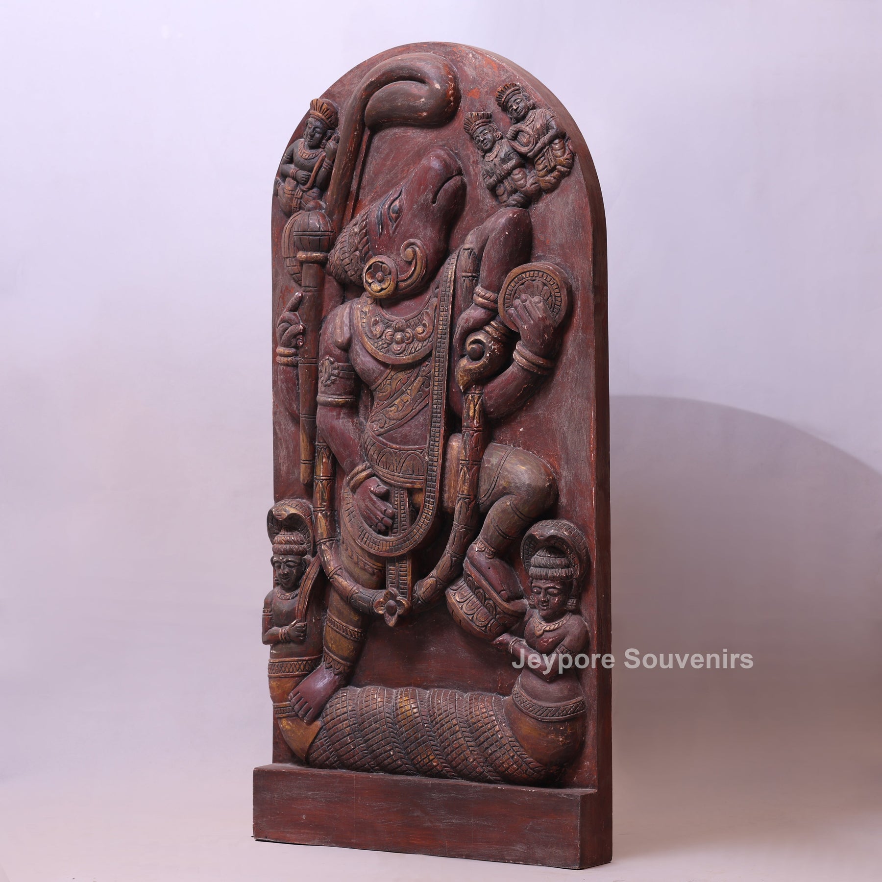 This Varaha statue is made from 100% premium-grade solid wood, ensuring durability and a long-lasting antique appearance. It is not resin or fiber, which adds value and authenticity.