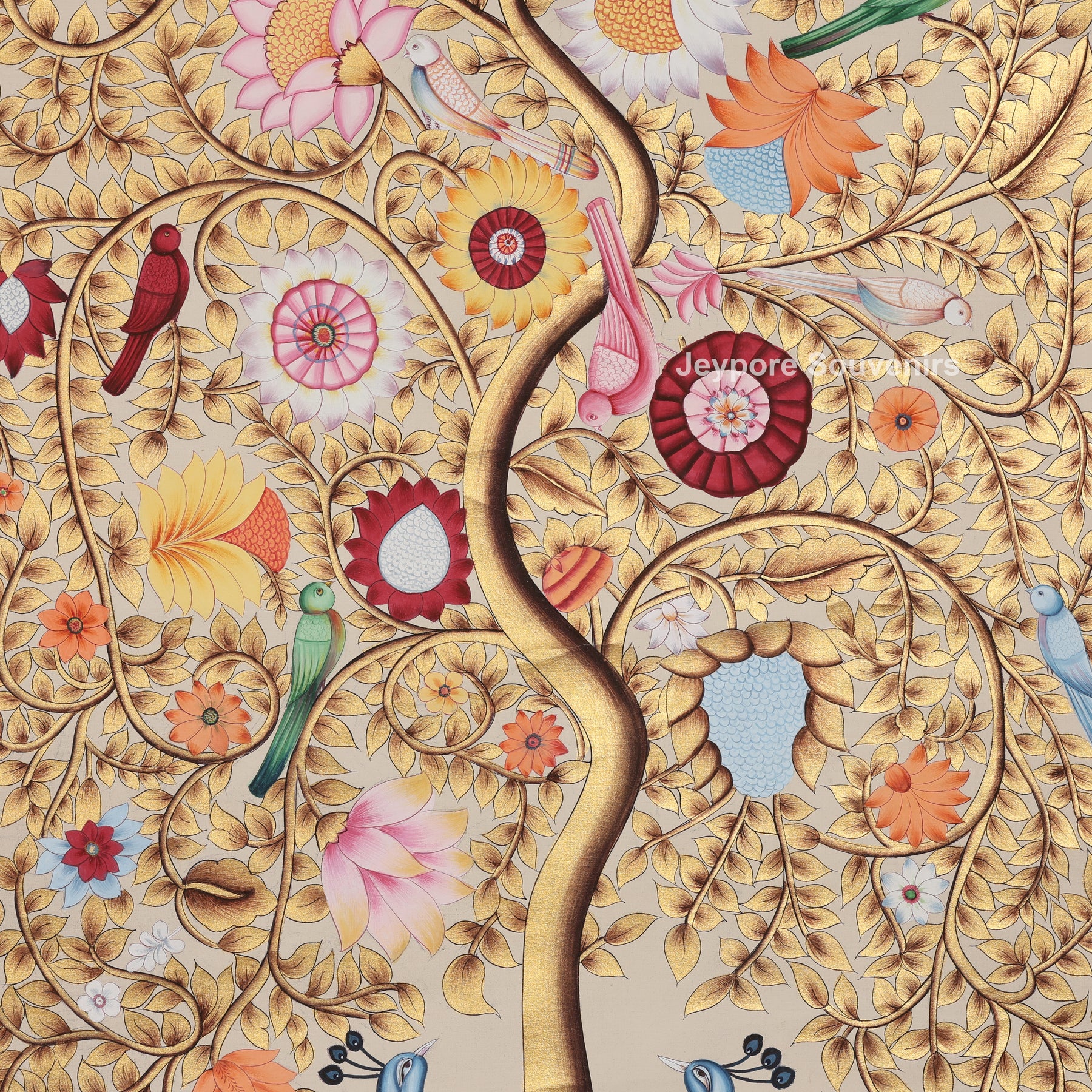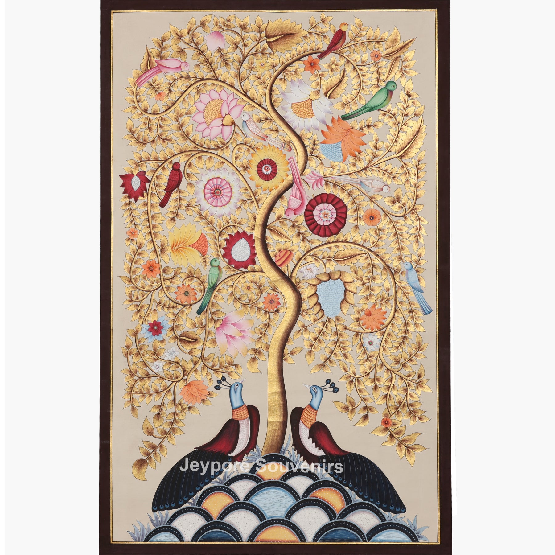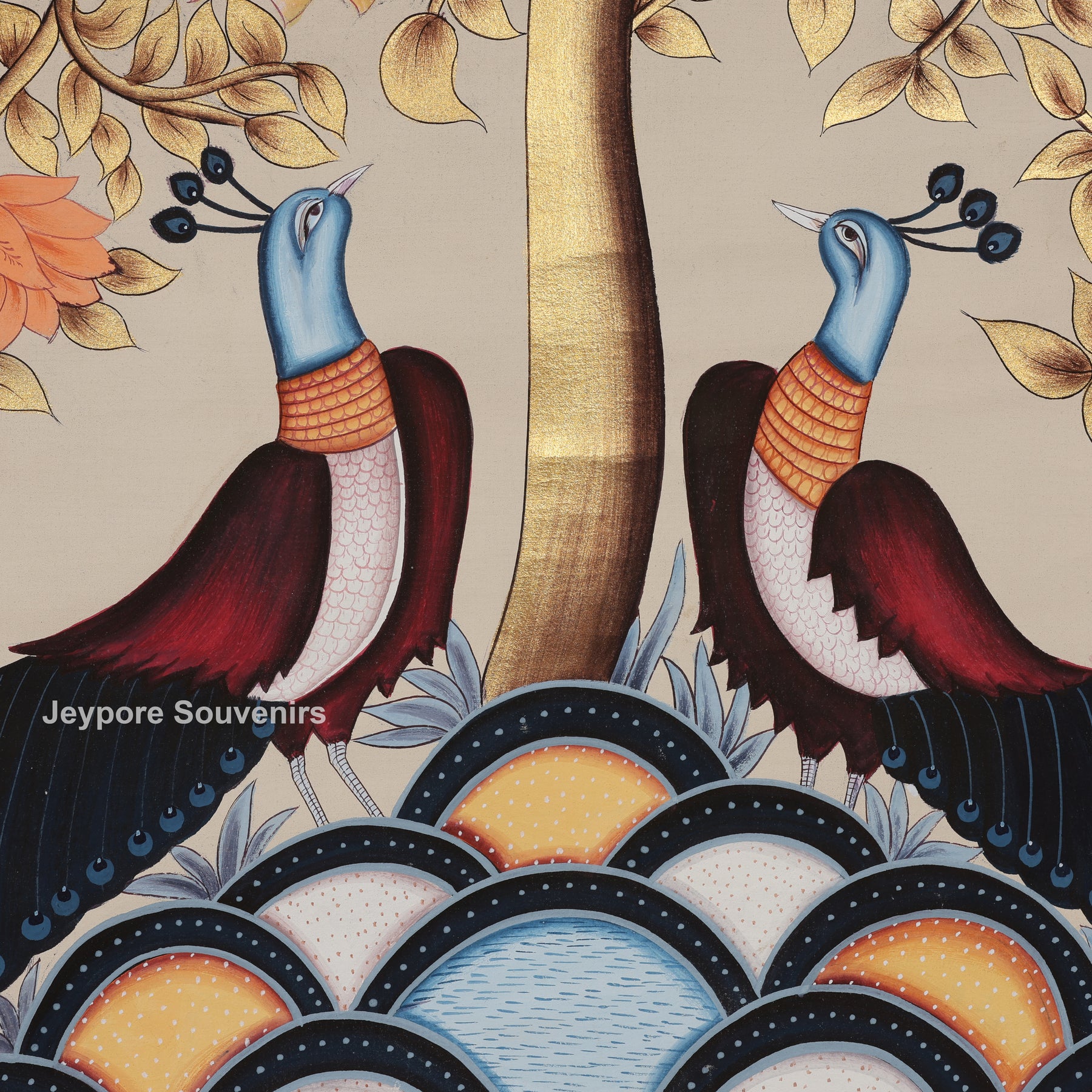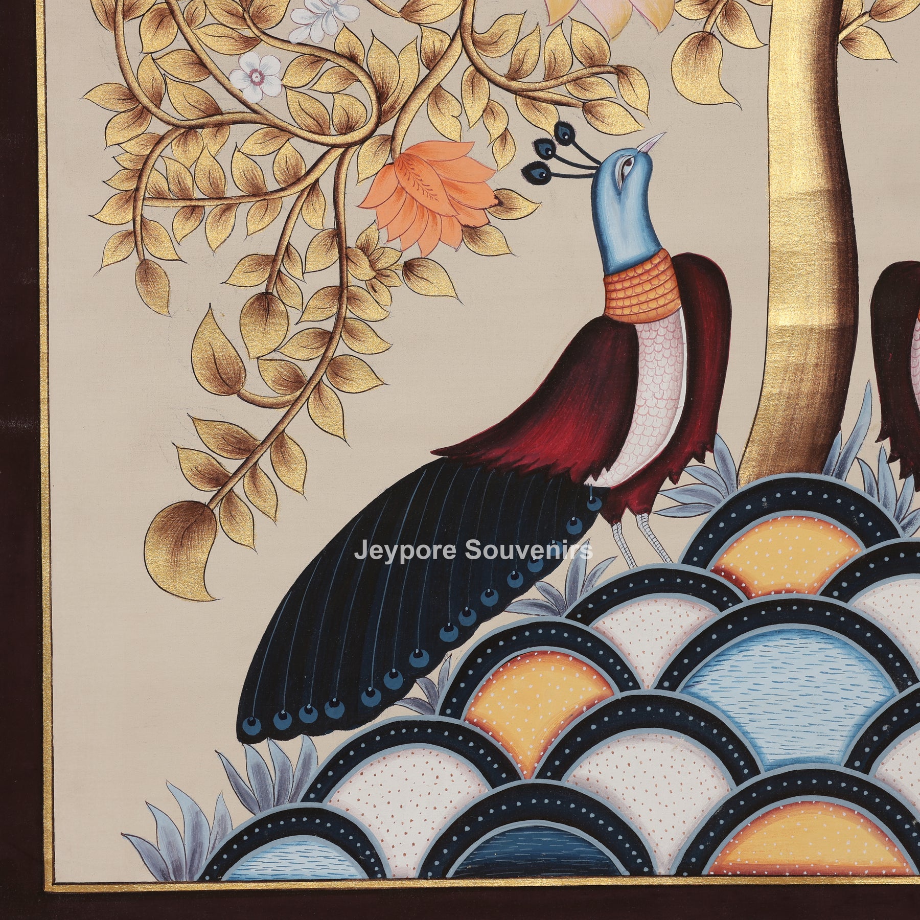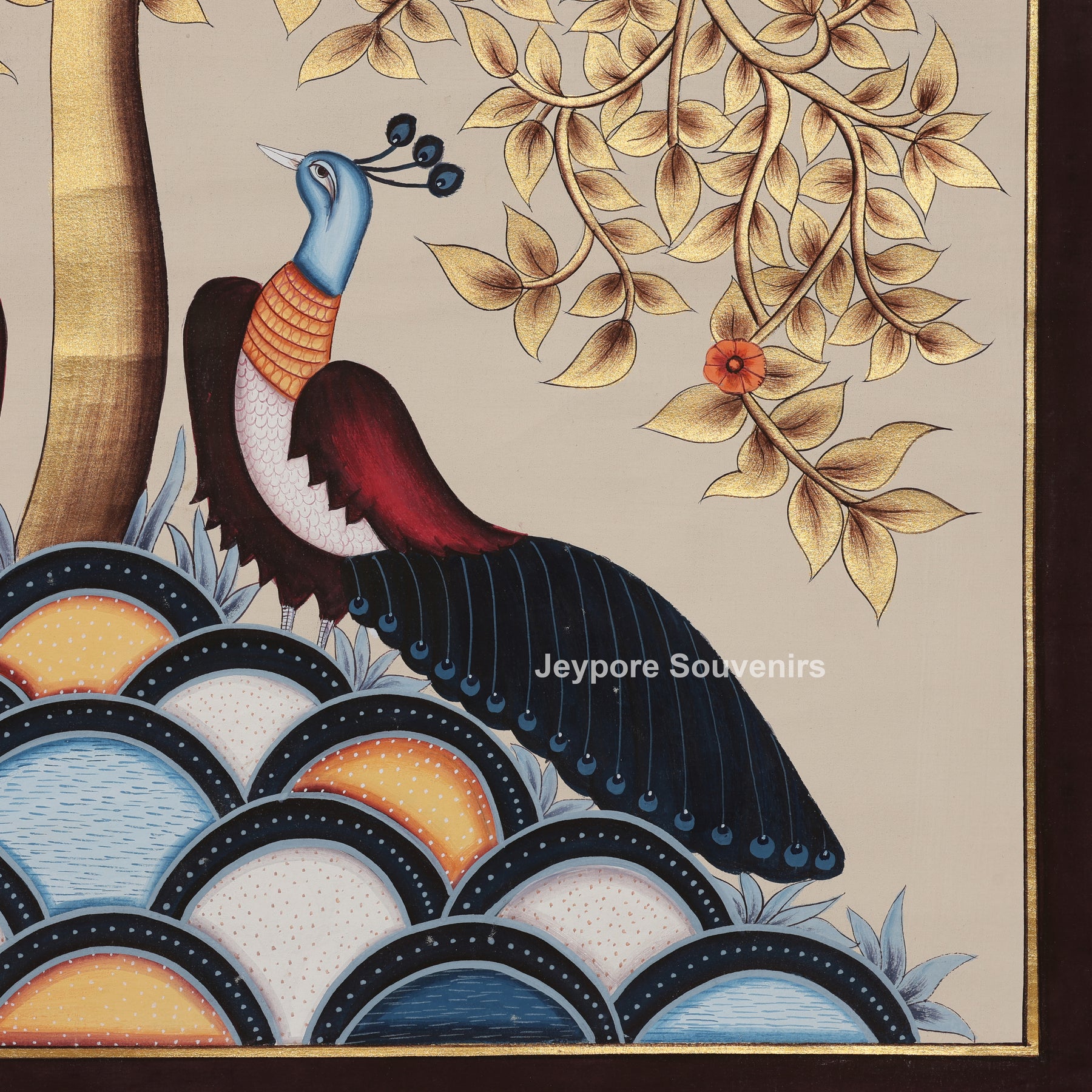 Traditional pichwai painting, hand-painted on premium quality cloth/canvas using natural mineral and vegetable pigments with delicate gold accents. Crafted entirely by skilled artisans employing age-old Indian miniature painting techniques, ensuring fine detailing, rich color depth, and lasting beauty.