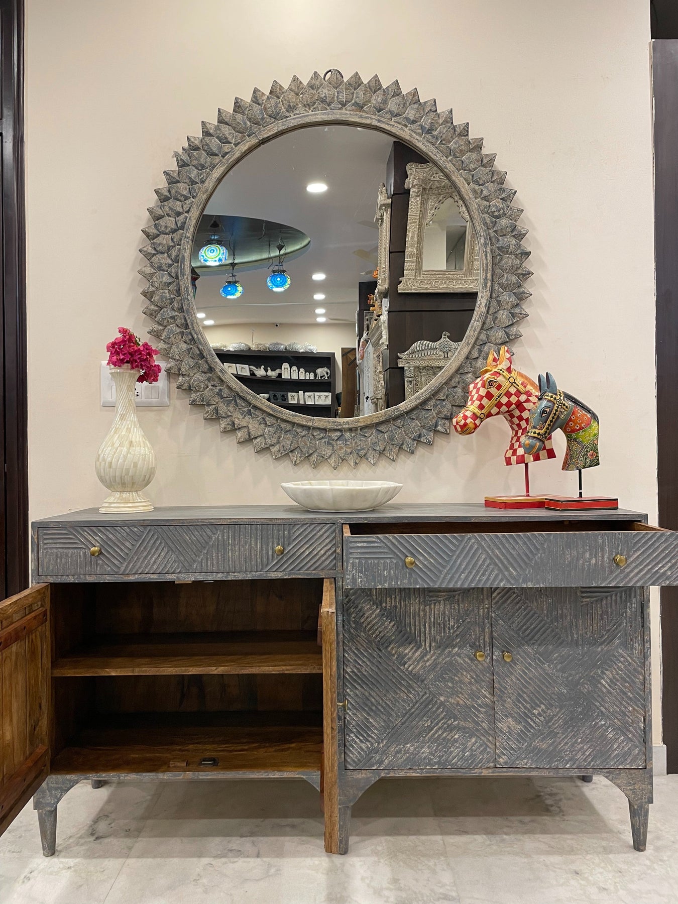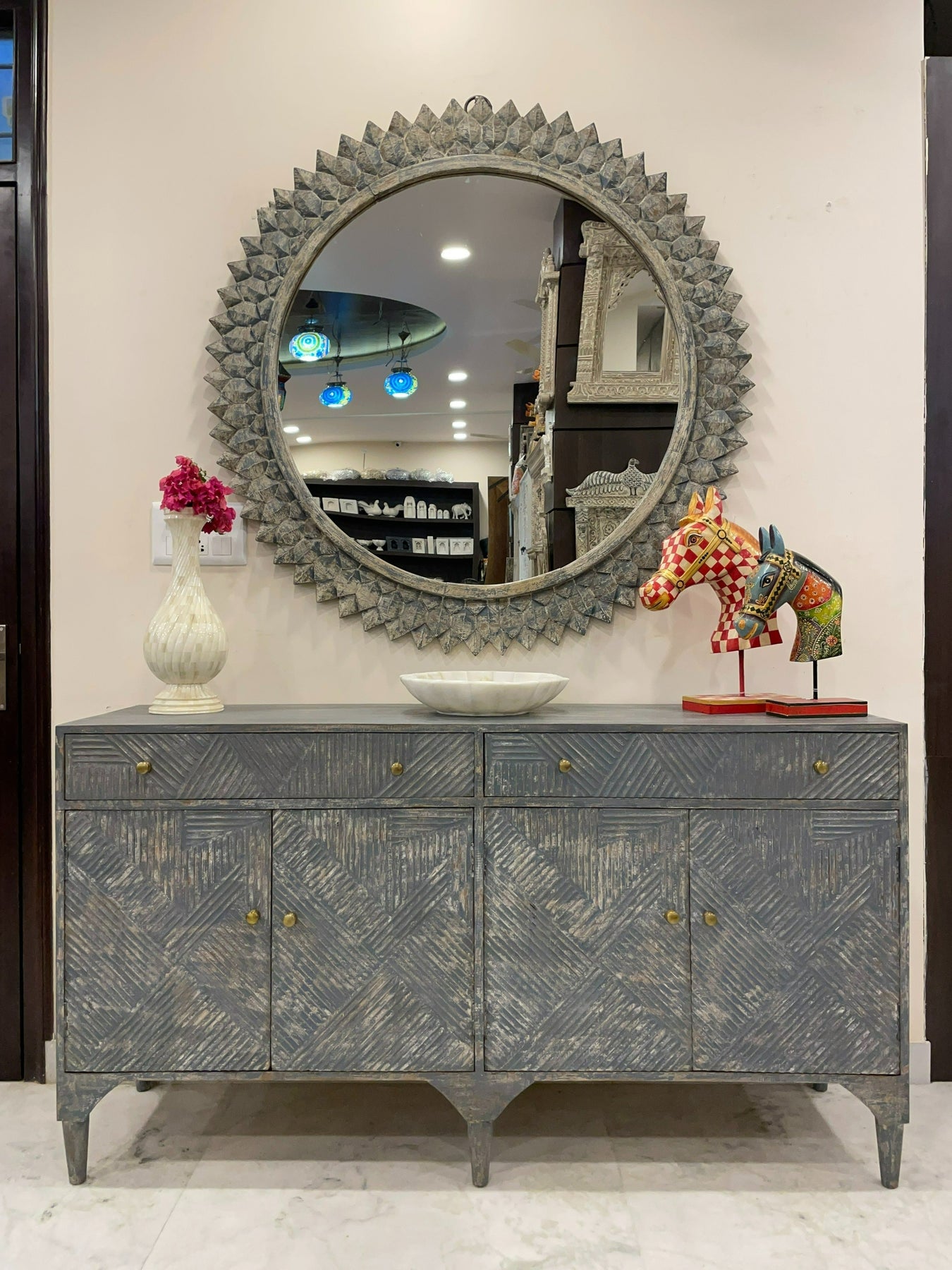 We translated the intricate design of ancient carvings to create this beautiful Console table. With the distressed finish, it's a look that reads both modern and chic.