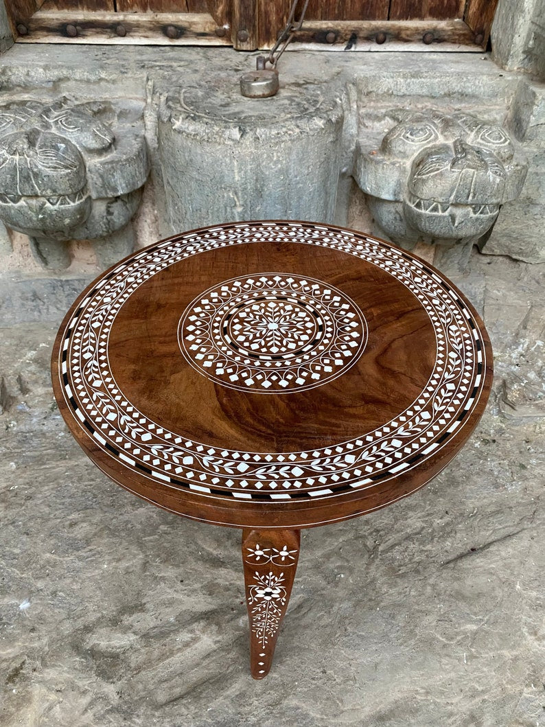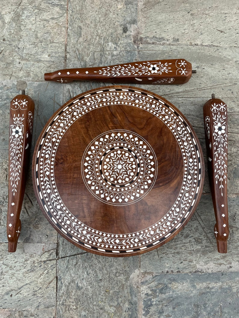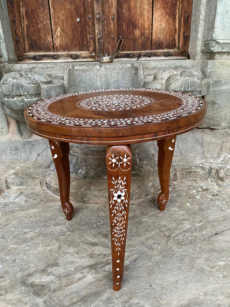 This Unique Circular Coffee table which is hand carved with Inlay work reflects the Indian craft in its true form. The legs of this wooden coffee table are detachable, so it becomes very east to carry this anywhere.