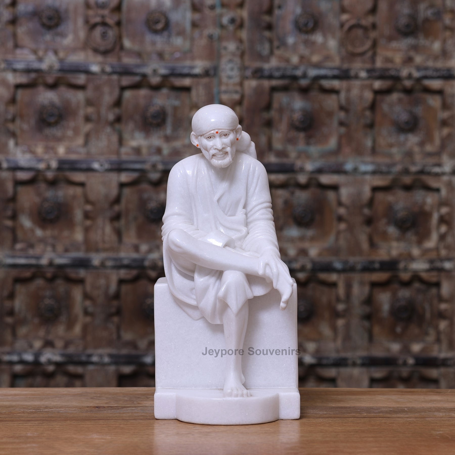 Invite serenity, compassion, and divine blessings into your space with this 15-inch Pure White Marble Sai Baba Statue, expertly hand-carved by master artisans of Jaipur. Representing Shirdi Sai Baba’s peaceful seated form, this idol radiates calmness and spiritual grace reminding devotees of his message: “Sabka Malik Ek” (God is One)