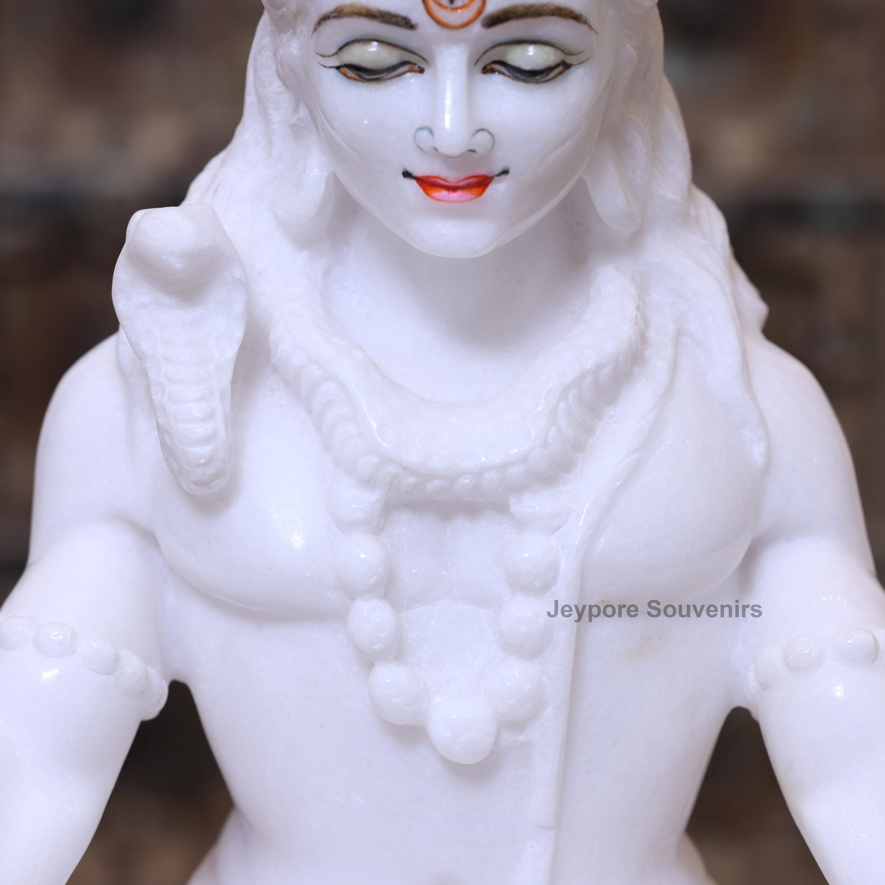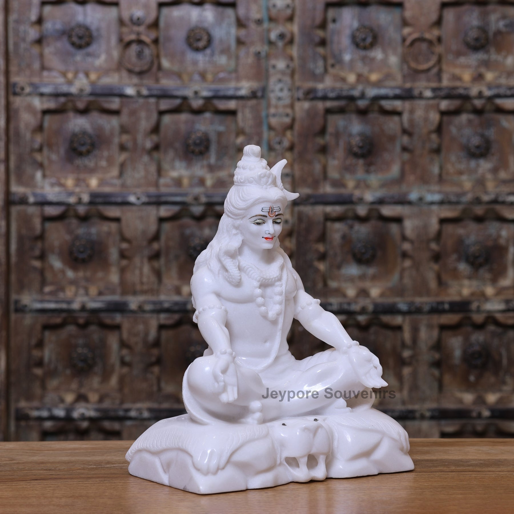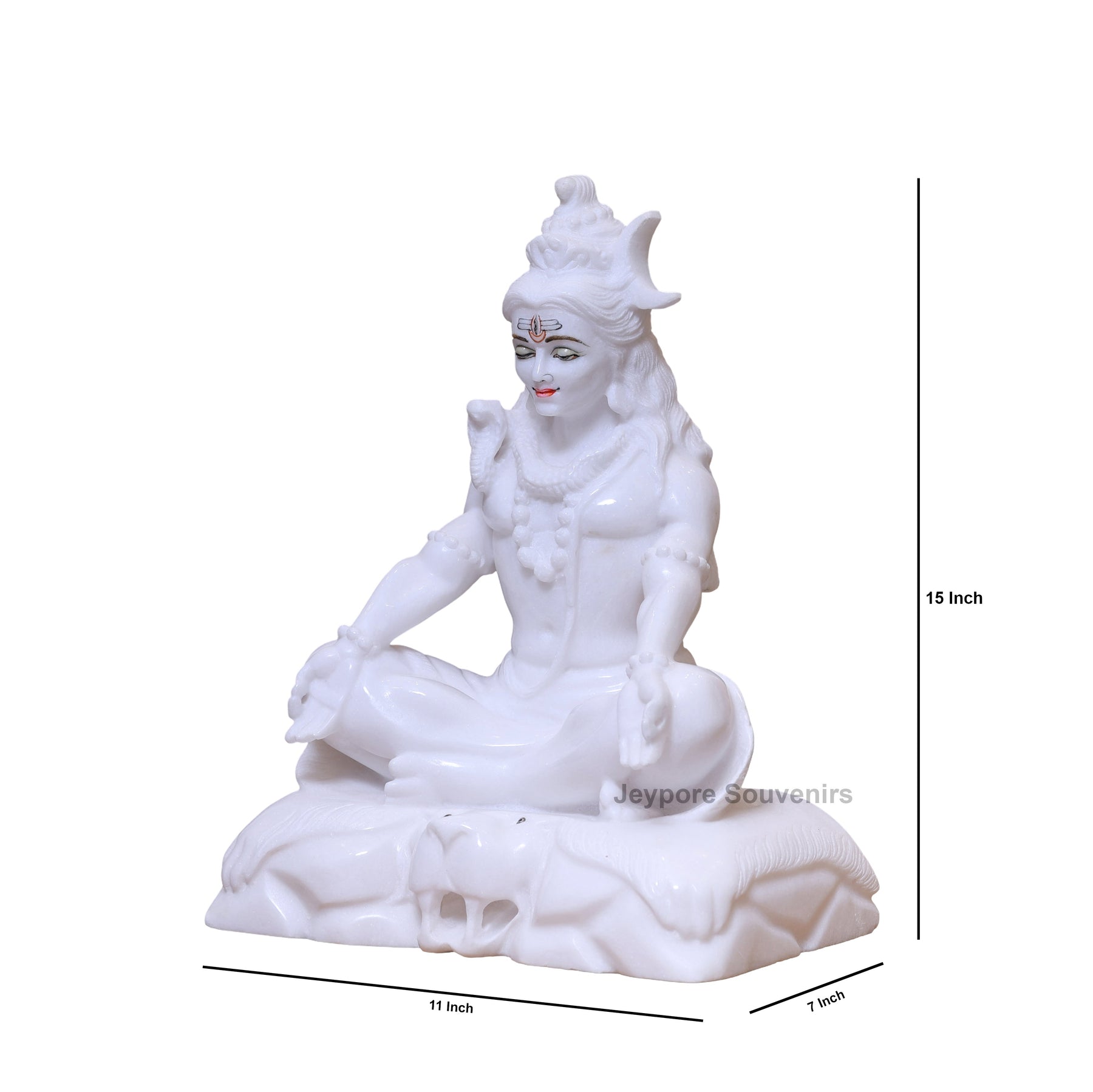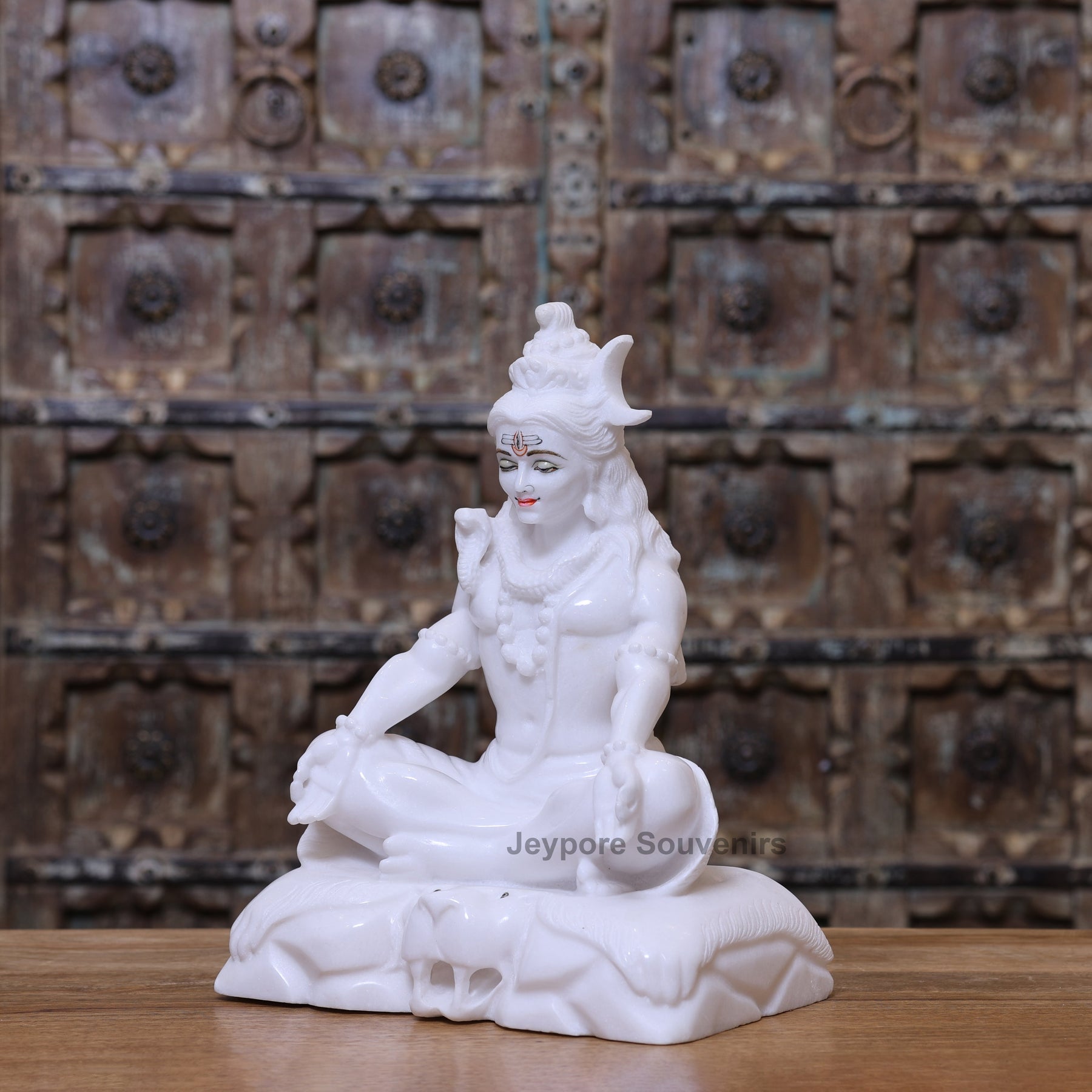 Bring divine serenity into your space with this handcrafted 15-inch Lord Shiva marble statue from Jeypore Souvenirs. Meticulously carved from a single block of pure Makrana marble. This Shiv Murti showcases a meditative posture, symbolizing calmness, detachment, and inner balance. The smooth white finish represents purity and peace, while the intricate hand-painted features reflect traditional artistry from Jaipur’s skilled artisans.