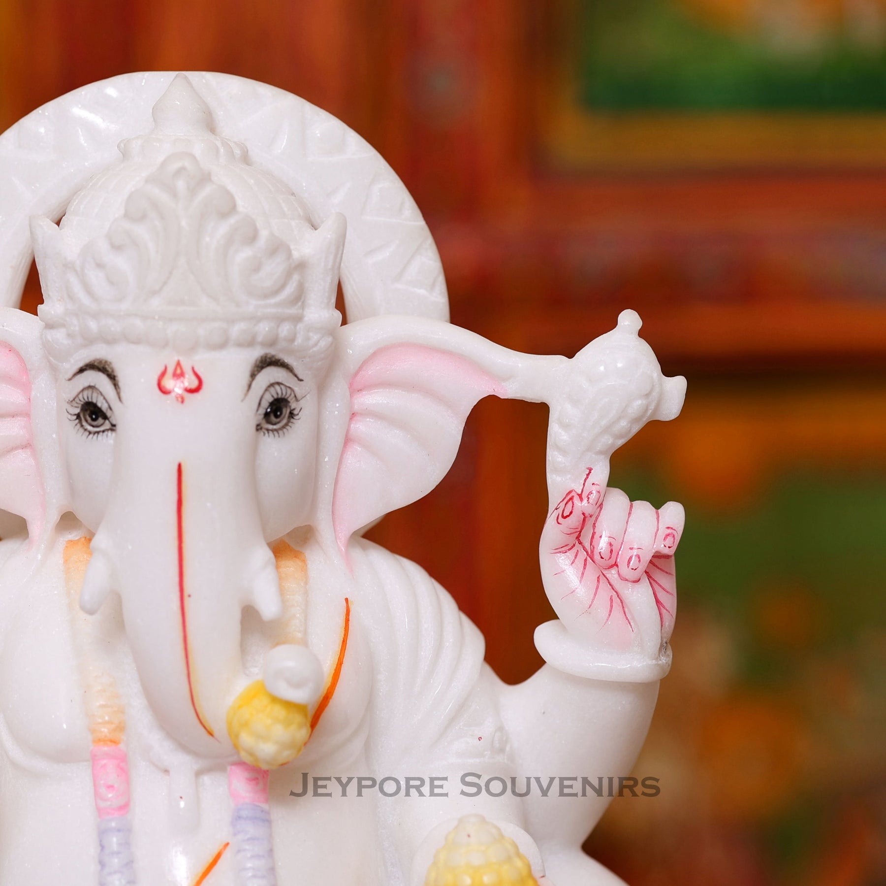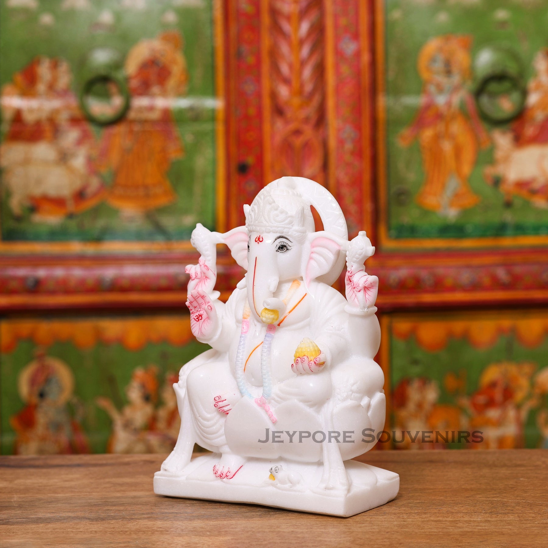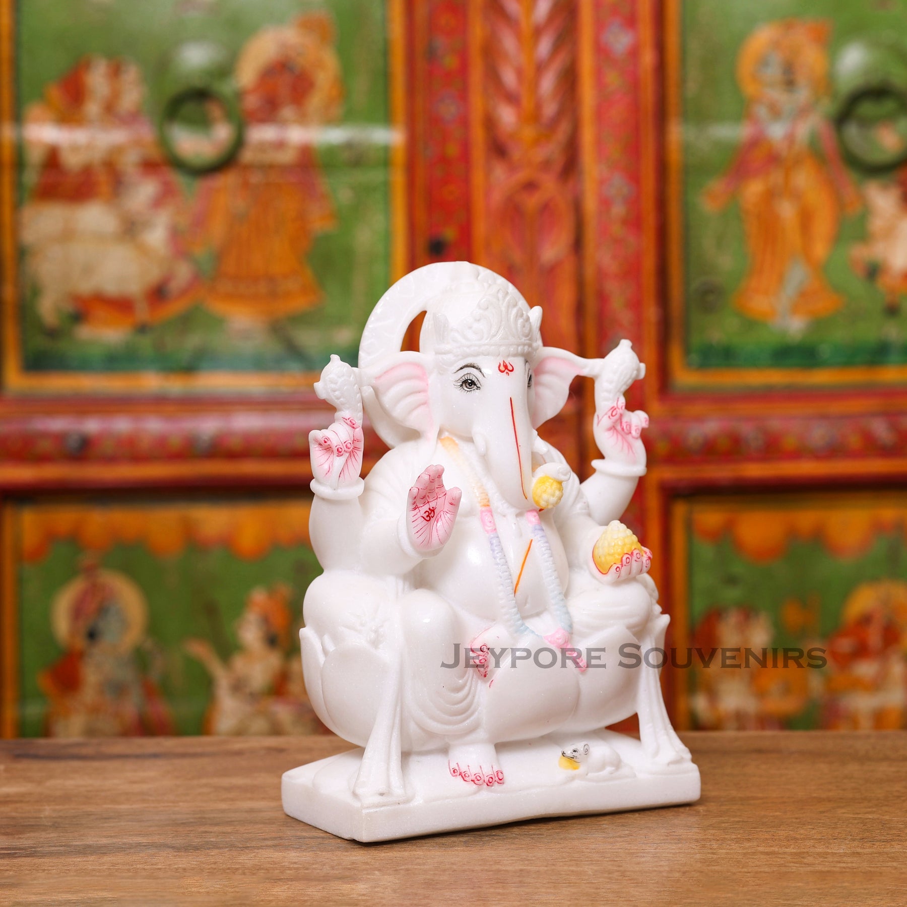 9" Handcrafted White Marble Lord Ganesha Idol for Home Temple & Décor