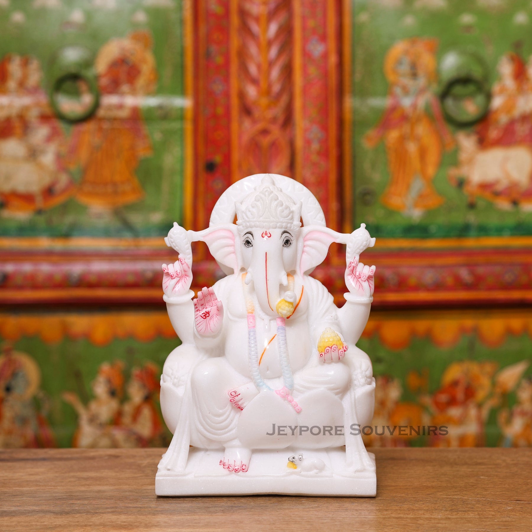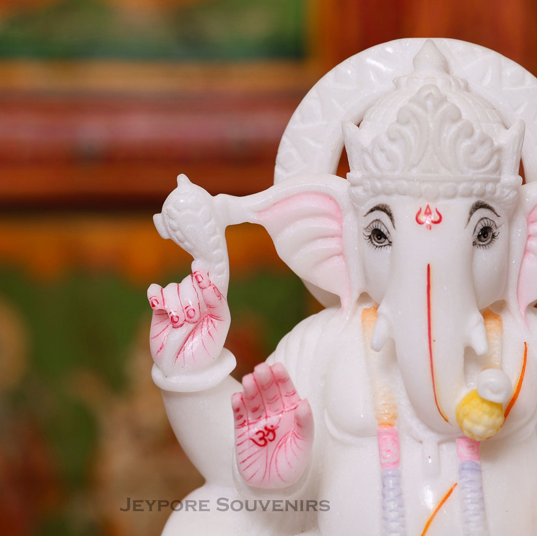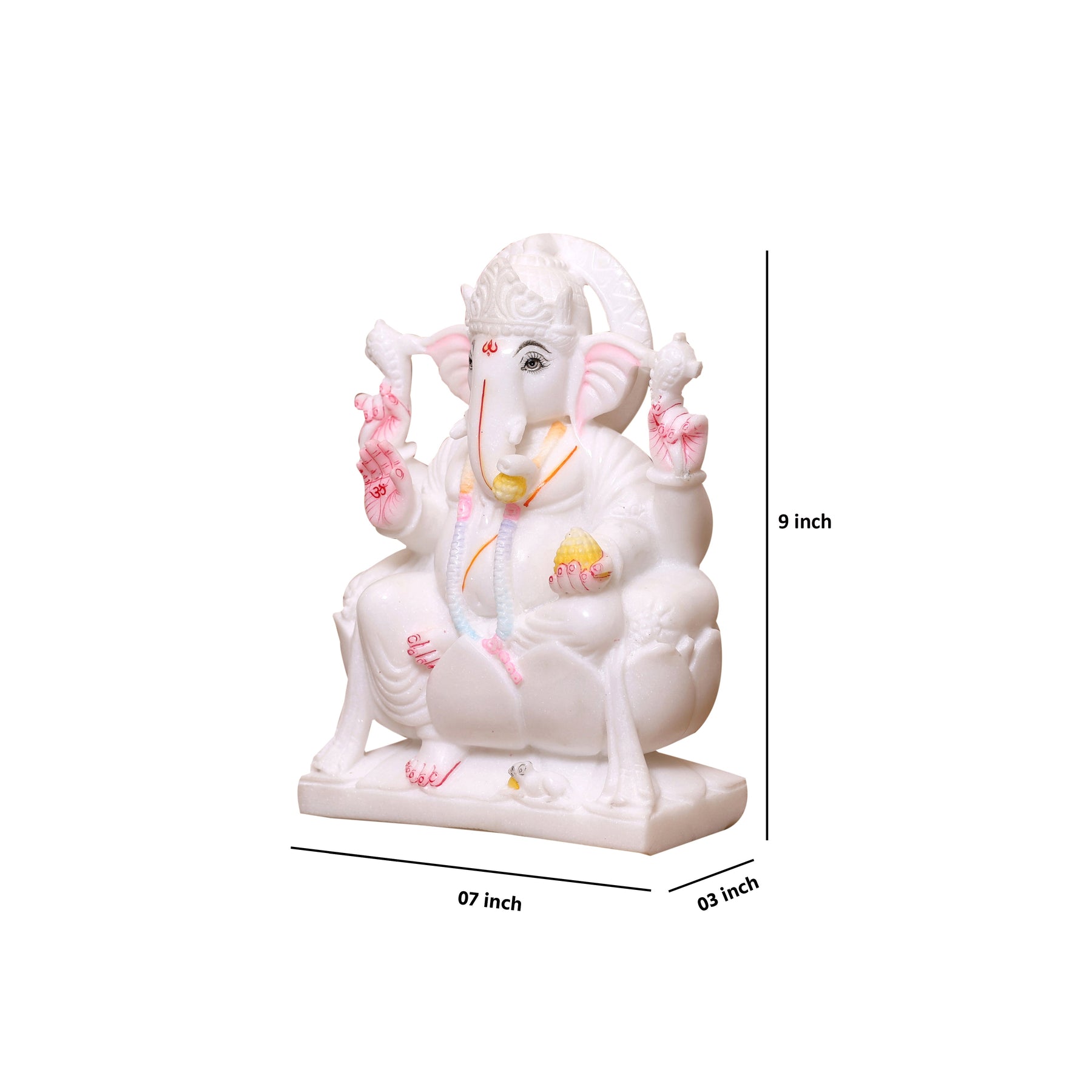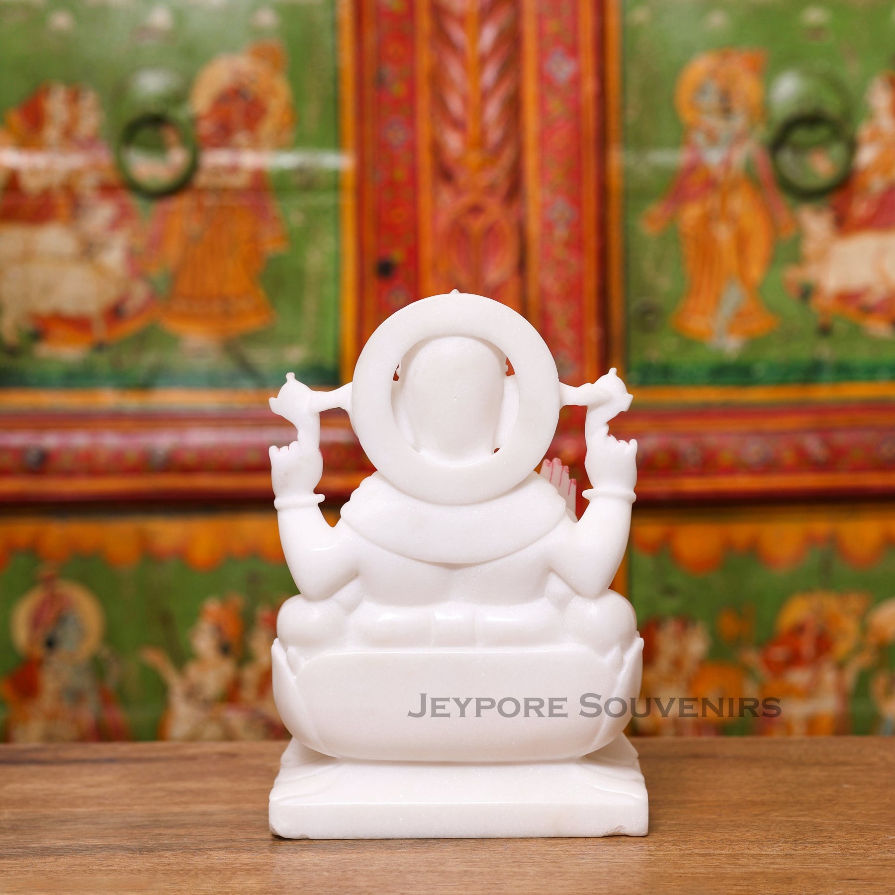 9" Handcrafted White Marble Lord Ganesha Idol for Home Temple & Décor