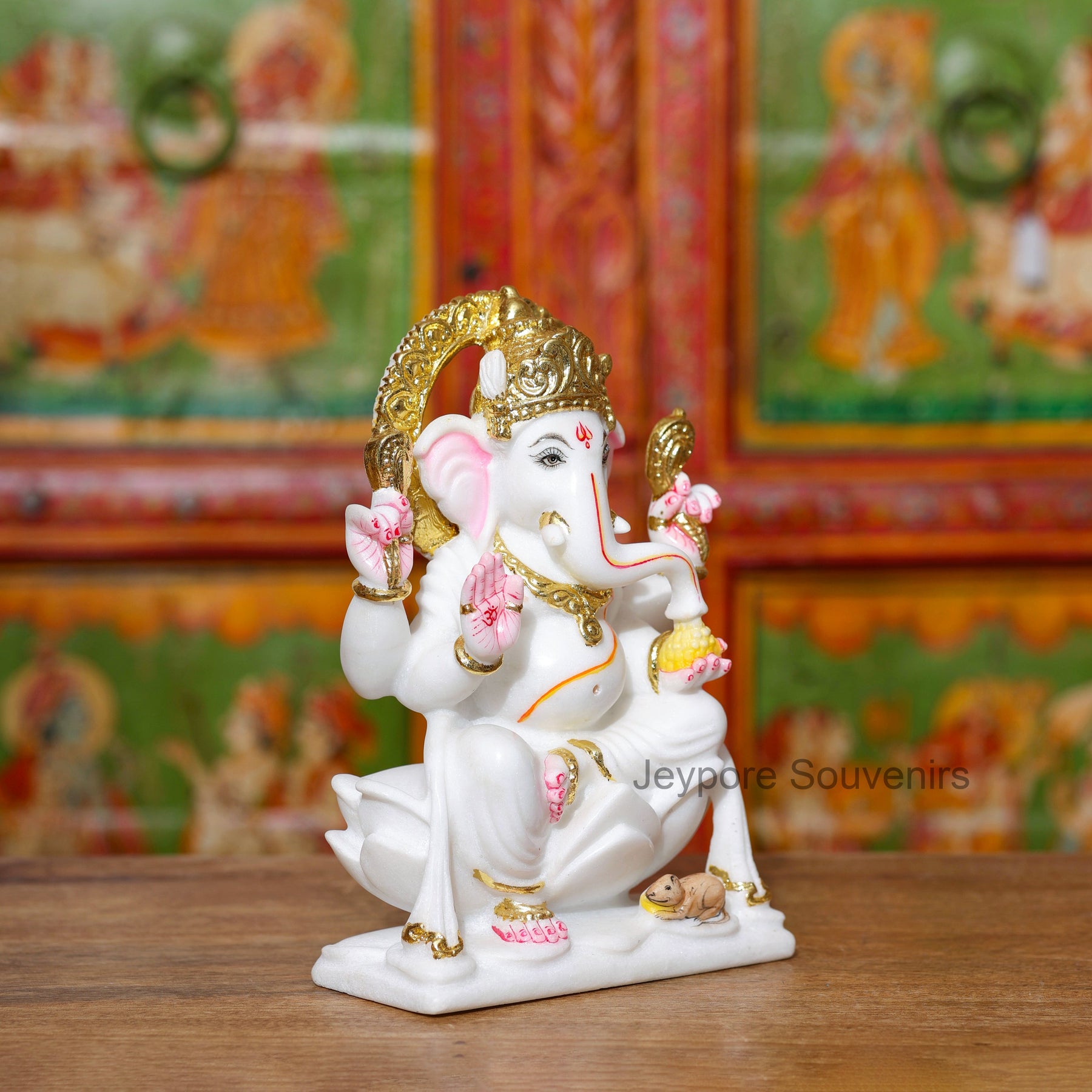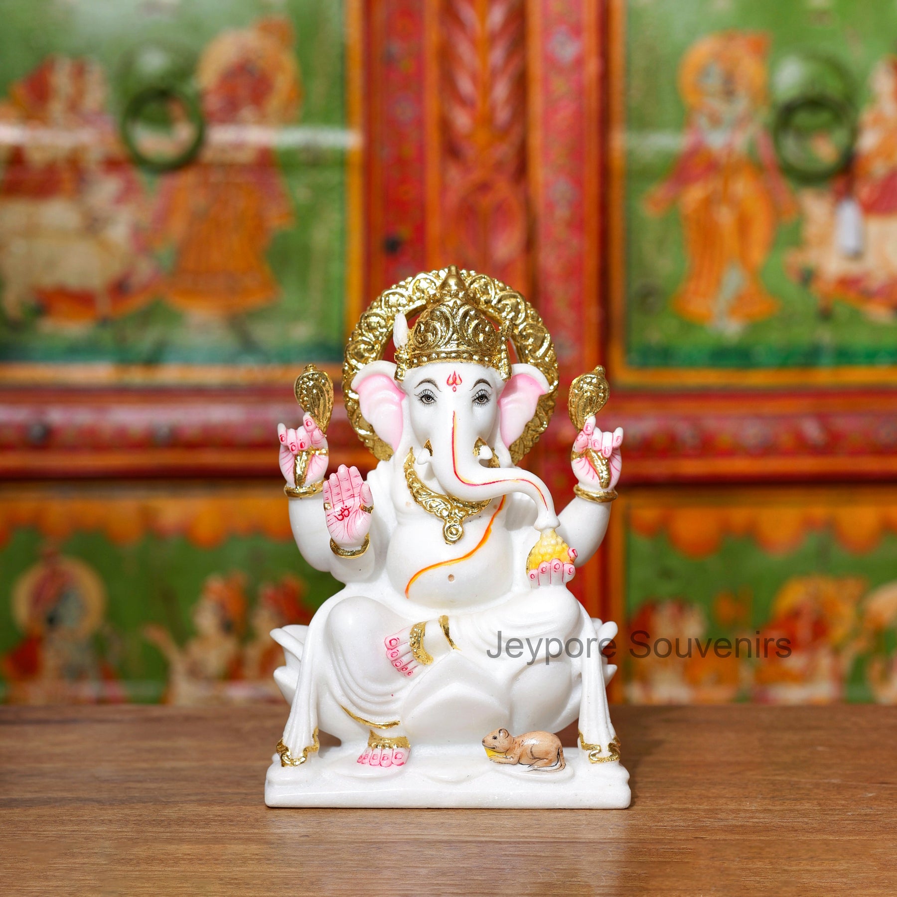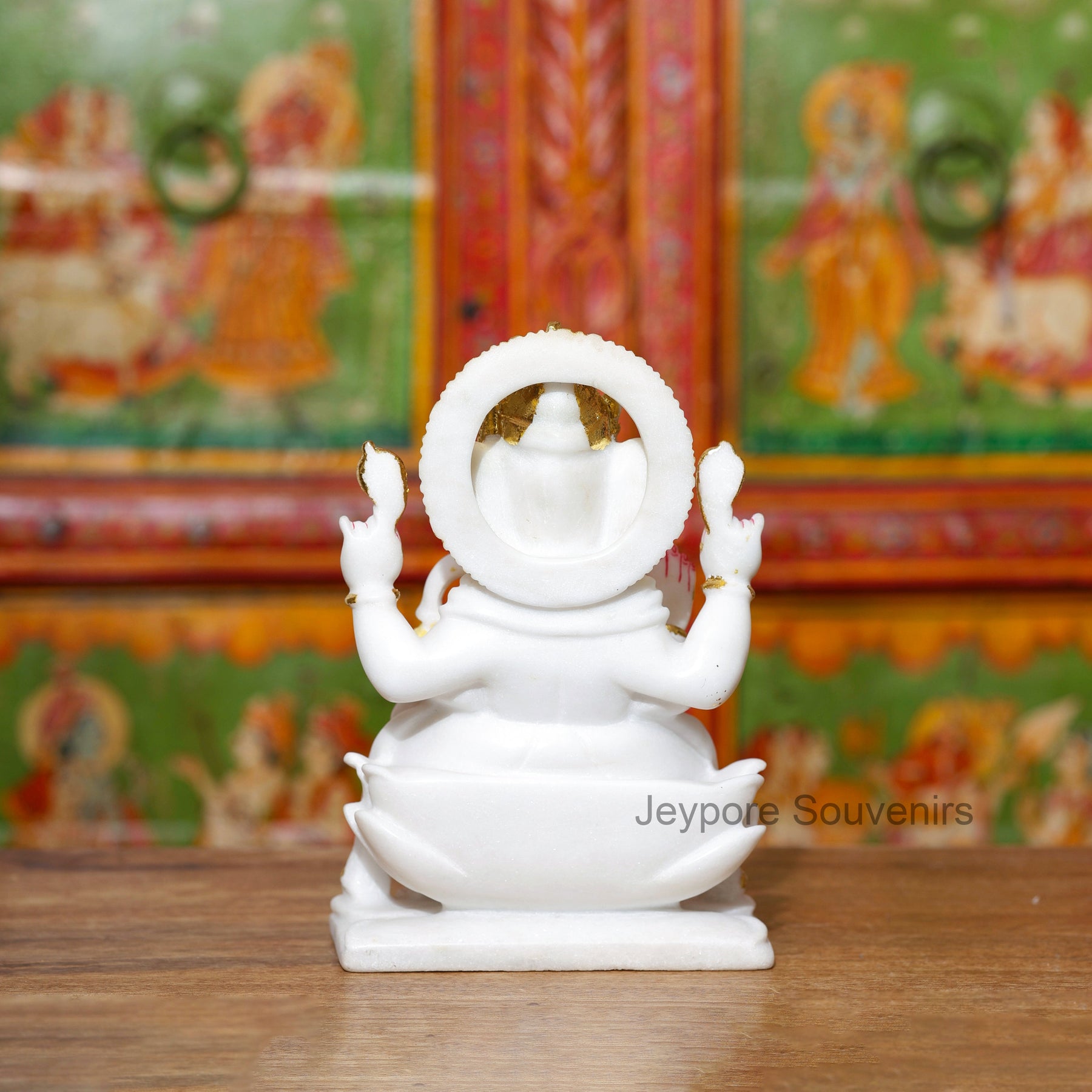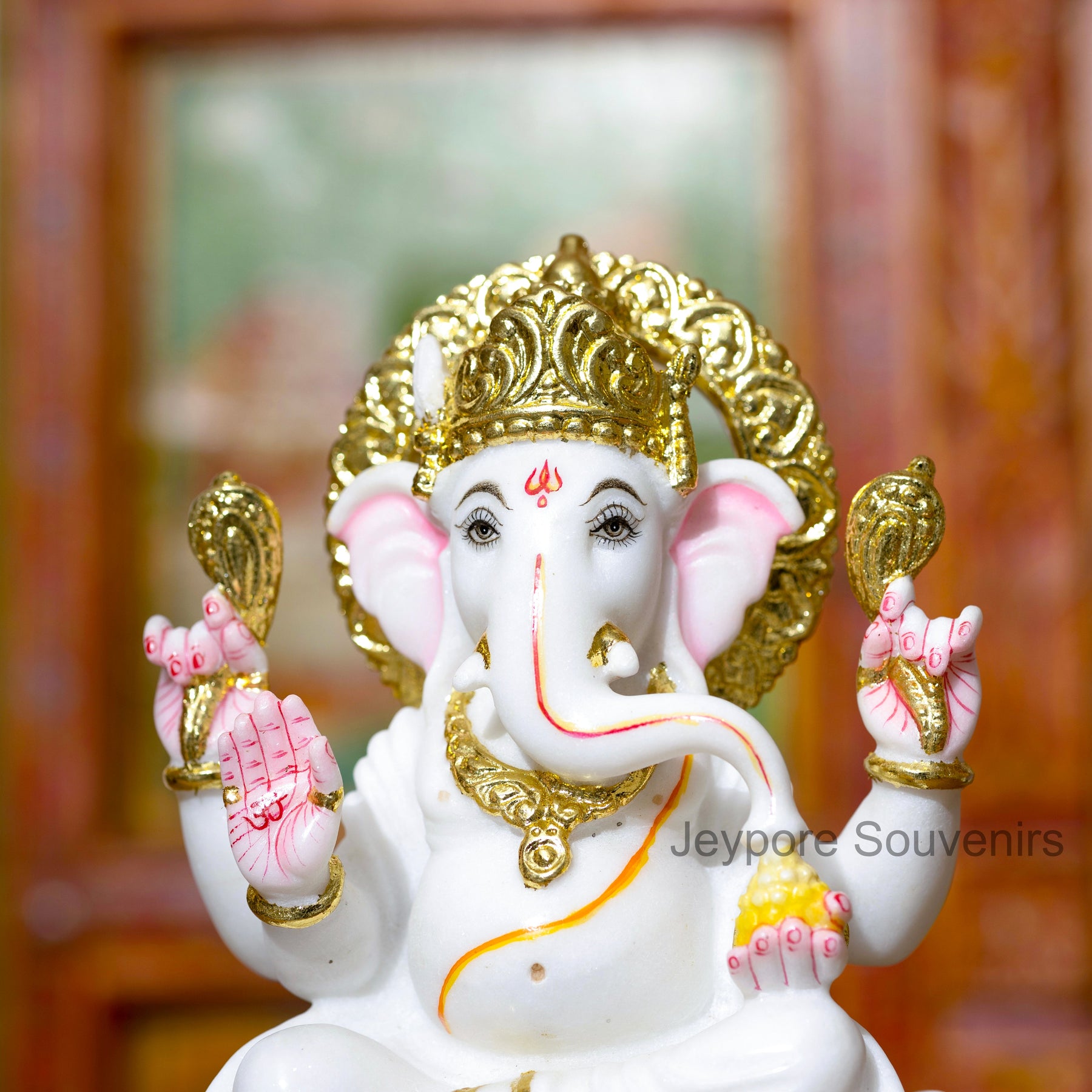 This Ganesha idol stands out because it is handcrafted from pure white marble and decorated with real gold leaf work — not imitation paint. Each piece is individually sculpted and detailed by skilled artisans, ensuring superior quality, authentic craftsmanship, and a radiant spiritual presence.