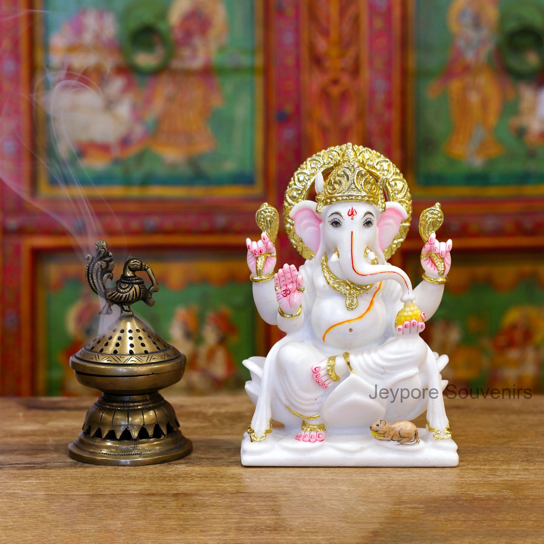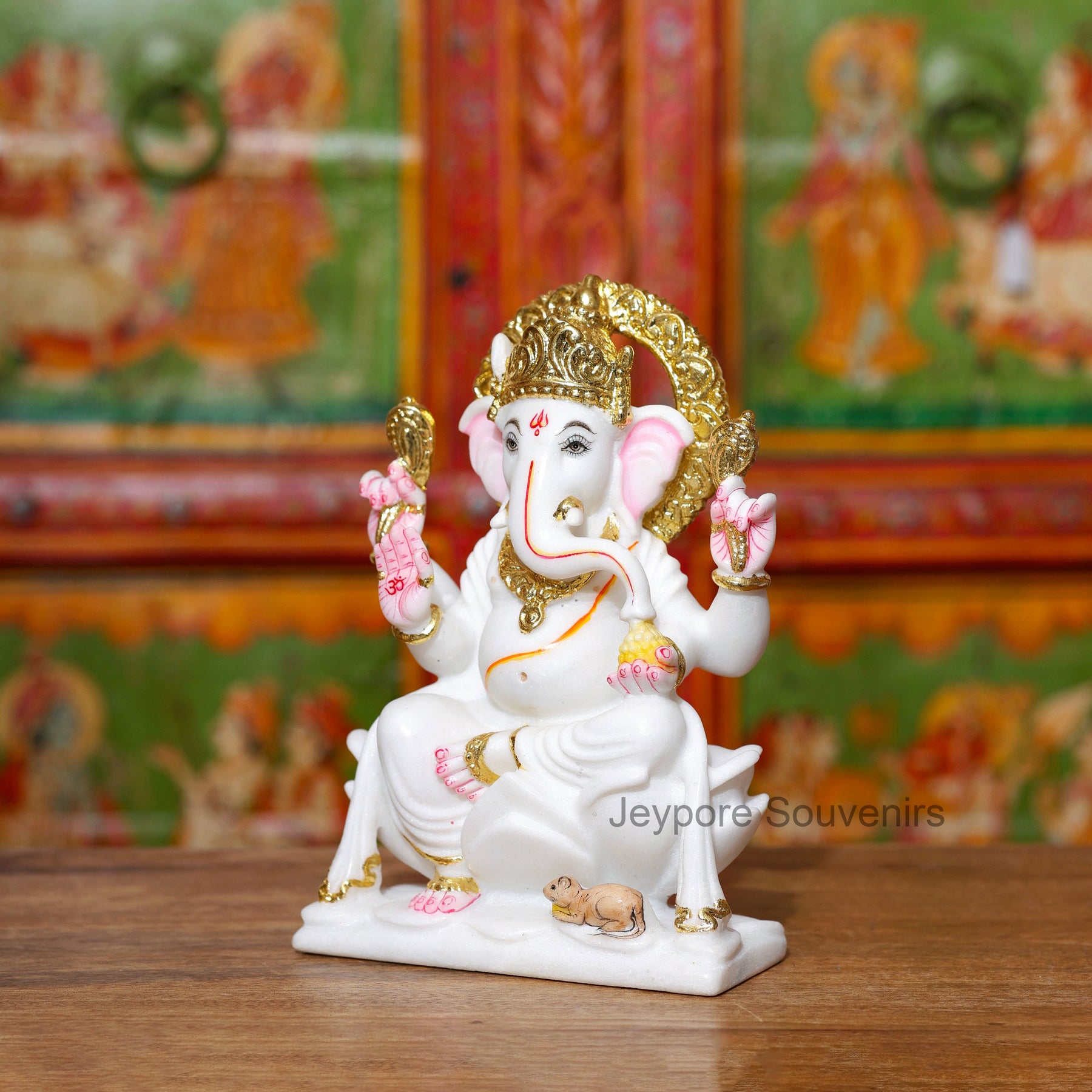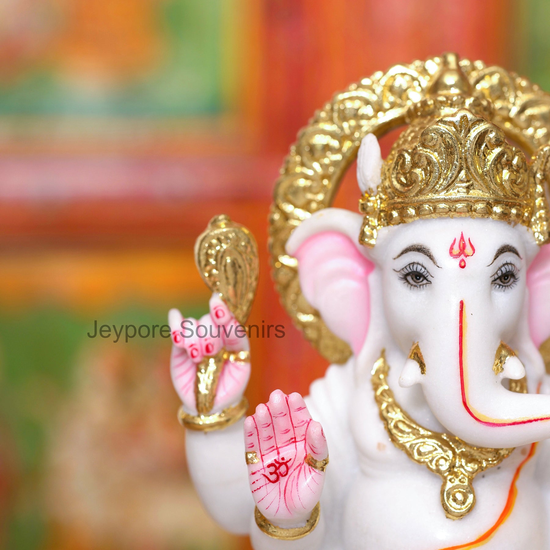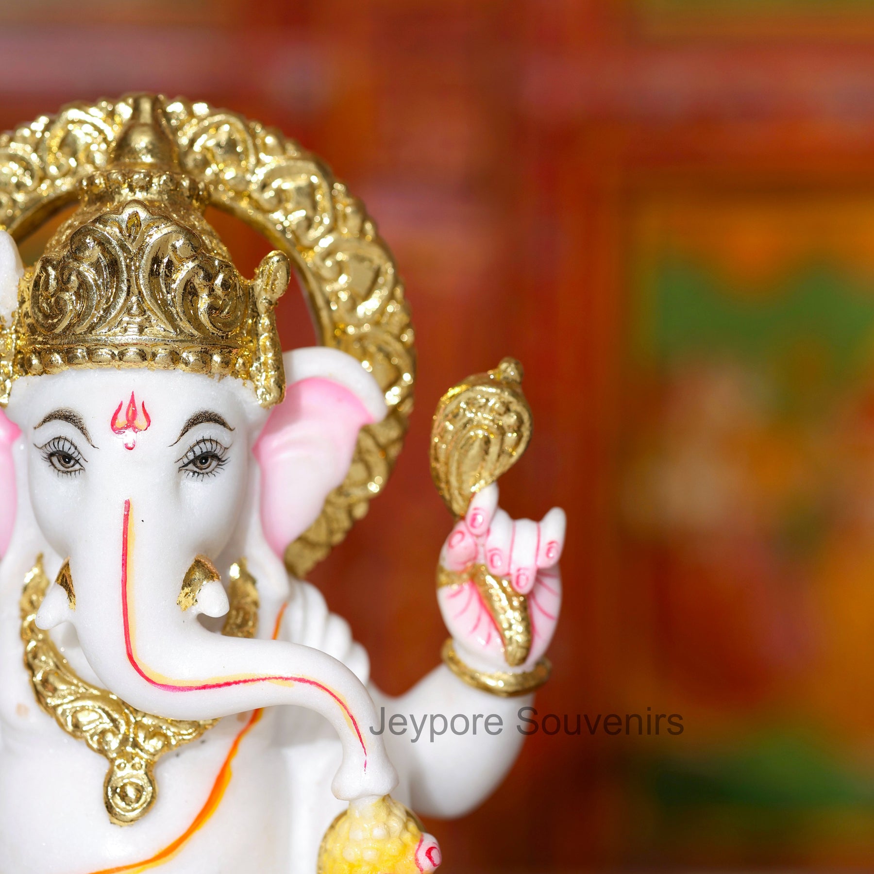 This Ganesha idol stands out because it is handcrafted from pure white marble and decorated with real gold leaf work — not imitation paint. Each piece is individually sculpted and detailed by skilled artisans, ensuring superior quality, authentic craftsmanship, and a radiant spiritual presence.