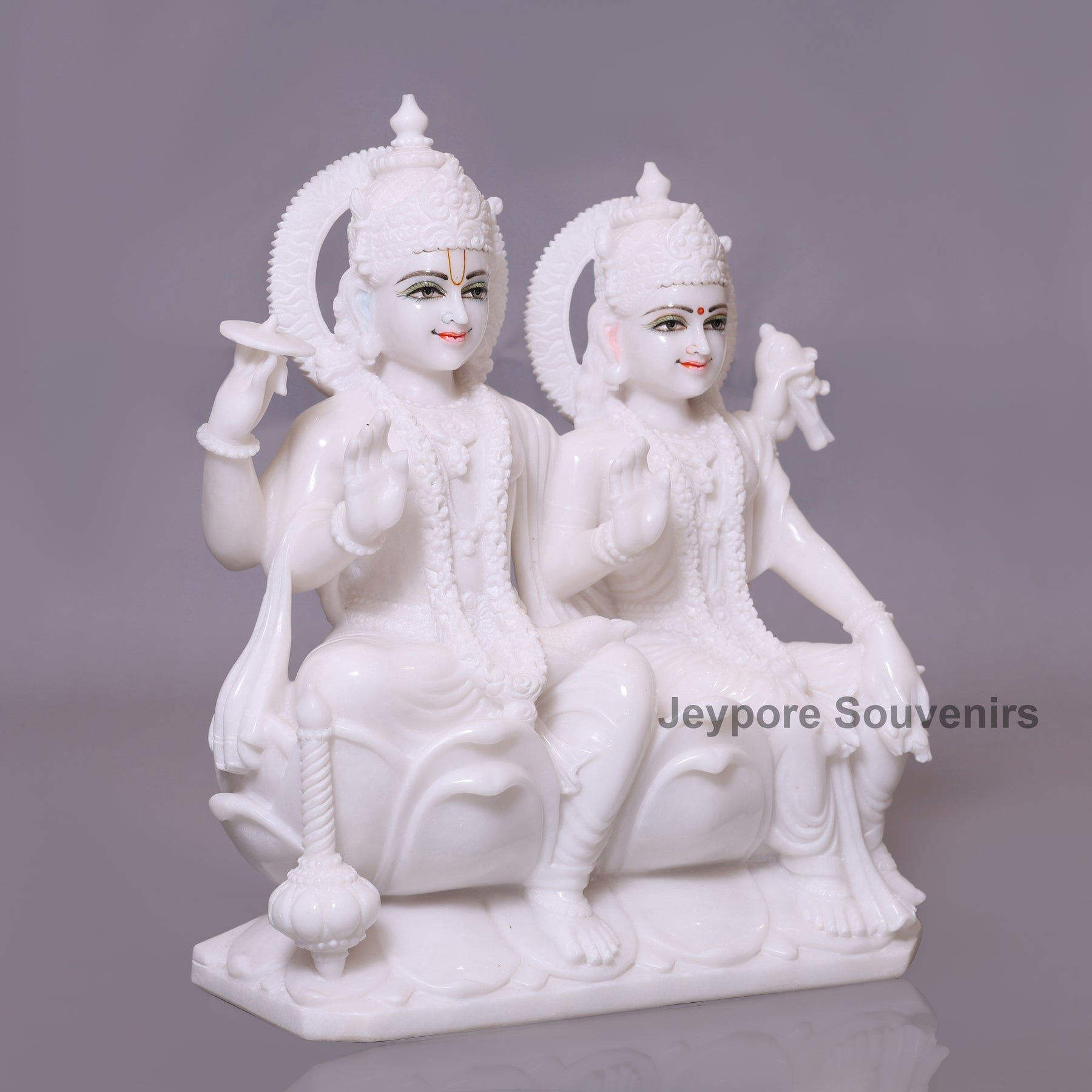 24" Divine White Marble Lakshmi Narayan Idol Set