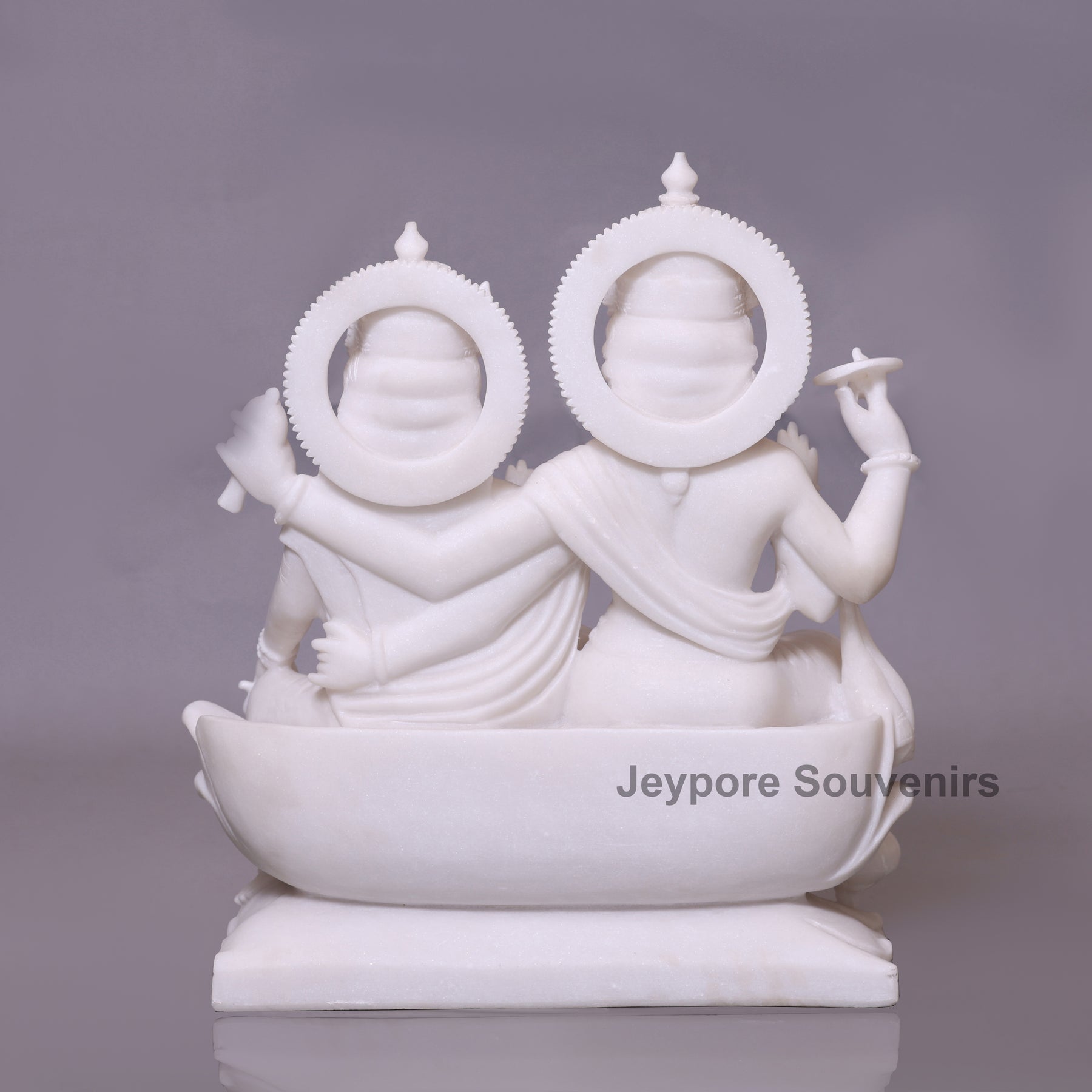 Invite unending blessings of wealth, prosperity, preservation, and cosmic harmony into your home with this breathtaking Lakshmi Narayan idol (Lord Vishnu and Goddess Lakshmi Statue Set). Meticulously hand-carved from pristine white marble by talented artisans at Jeypore Souvenirs, this 24-inches statue beautifully depicts Lord Vishnu (Narayan) and Goddess Lakshmi seated together, symbolizing perfect union and auspiciousness. This masterpiece is a profound addition to any spiritual space, radiating peace and abundance.