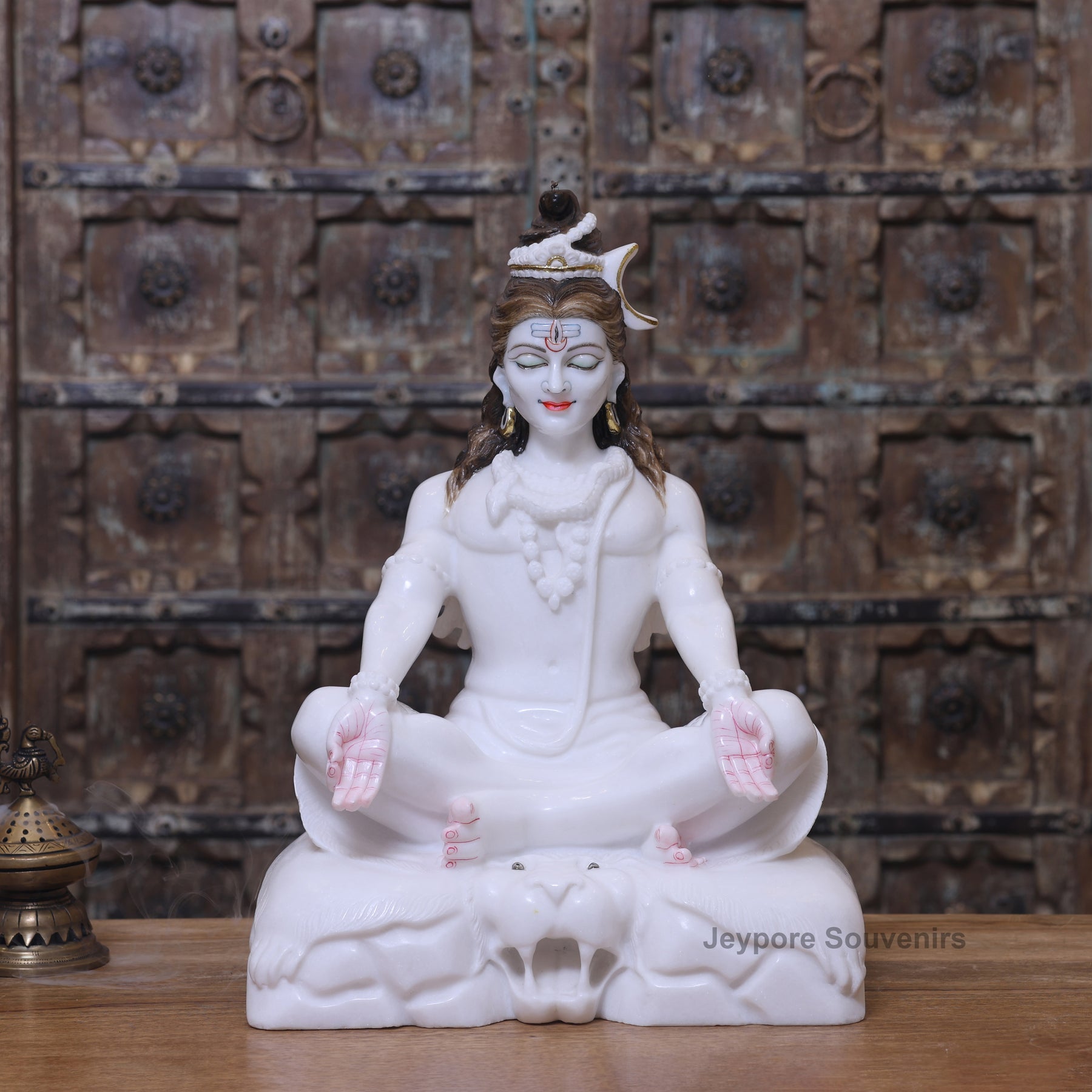 Bring divine serenity and spiritual balance to your space with this 18-Inches Handcrafted Lord Shiva Statue, carved from pure white marble by expert artisans of jeypore souvenirs. Representing shiva in a meditative posture, this sculpture radiates calmness, focus, and divine strength making it an ideal addition to your home temple, meditation corner, or spiritual décor.