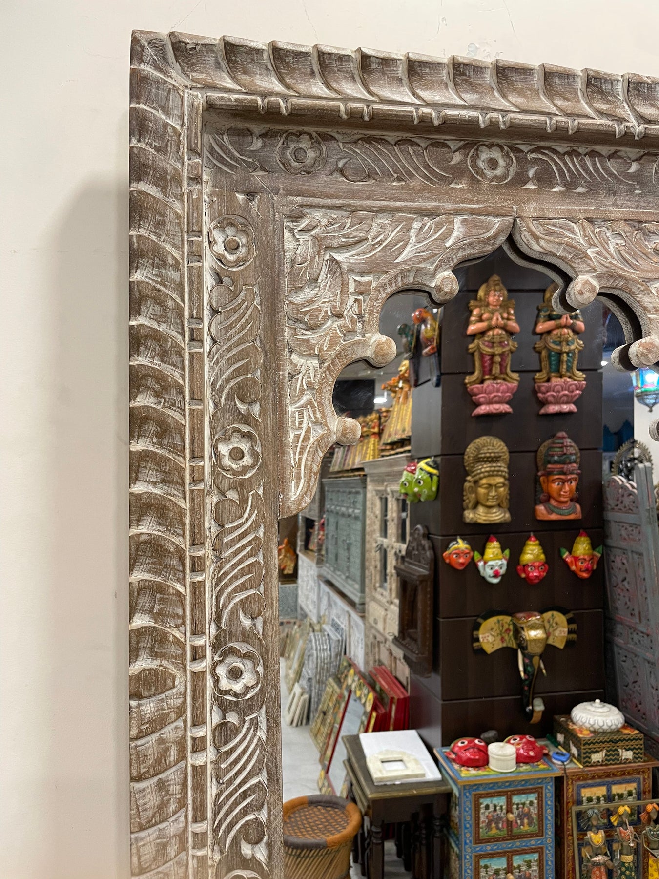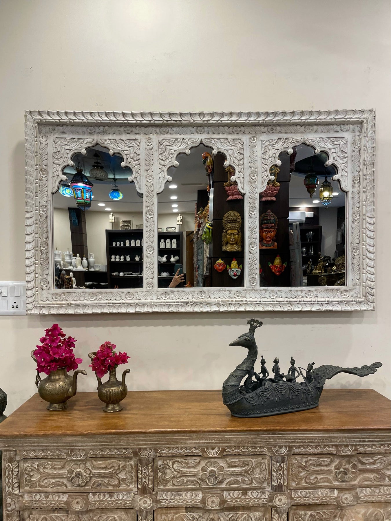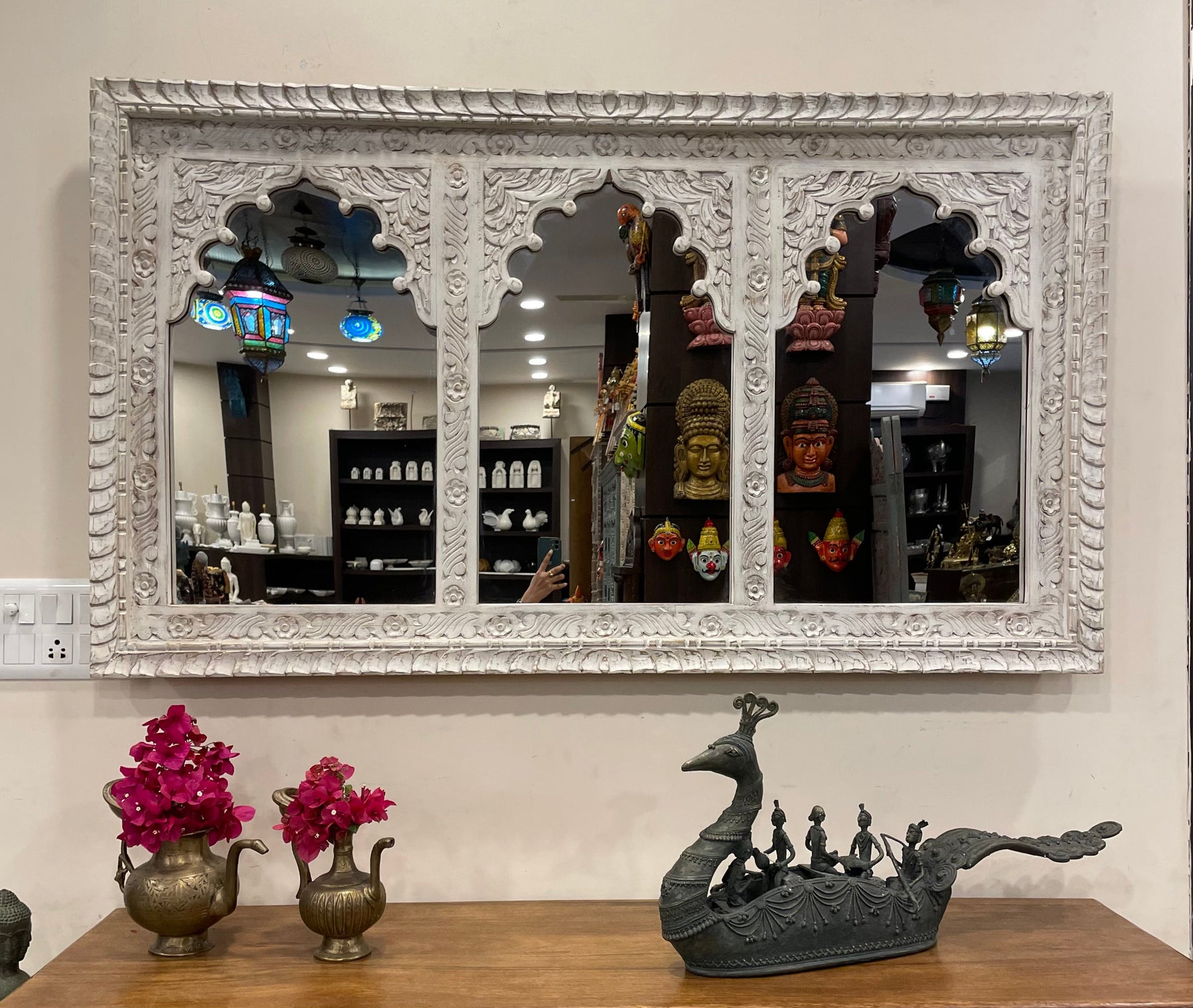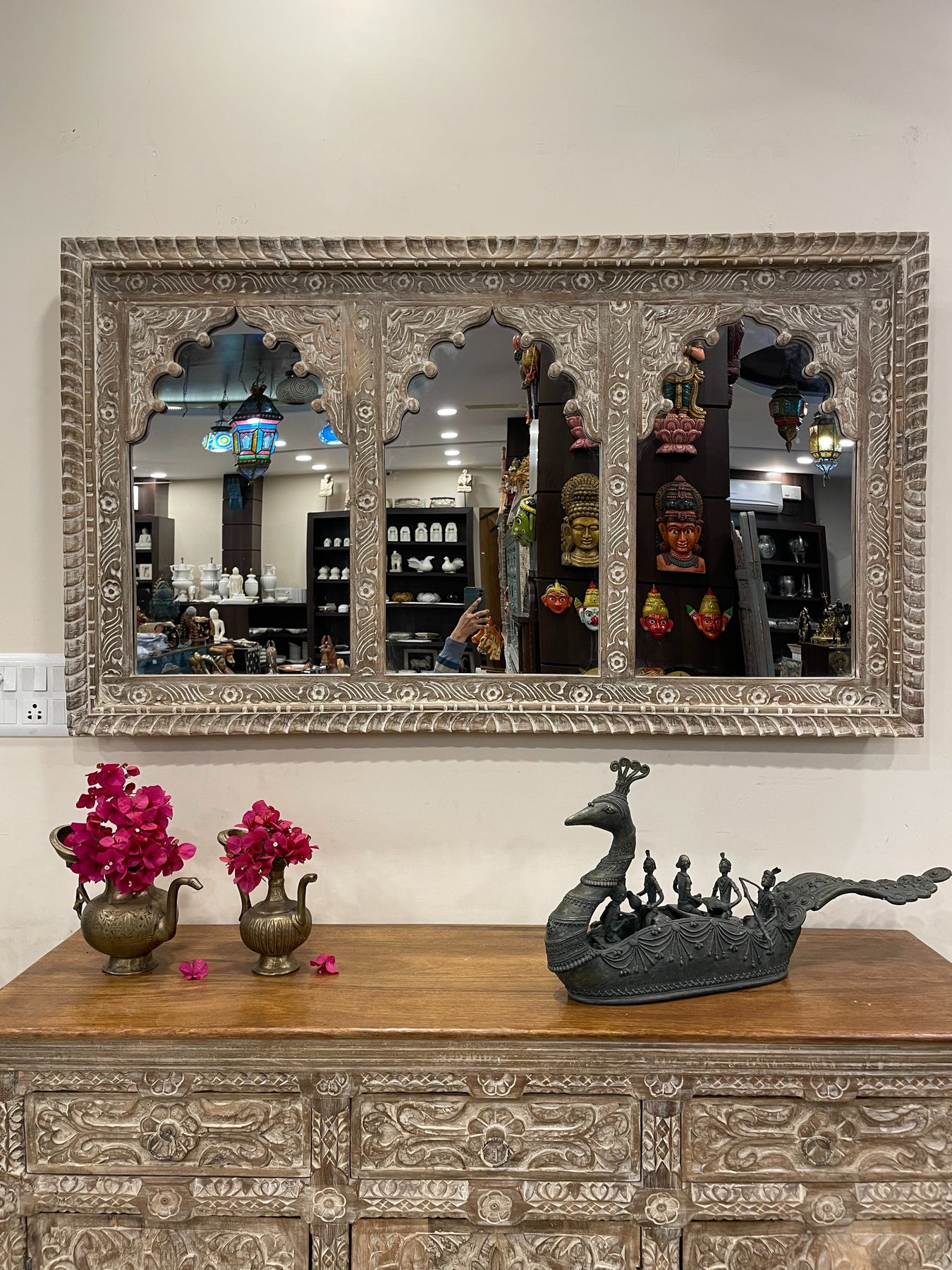 Enhance your space with this beautifully carved Distressed 3 Jharokha wooden frame!