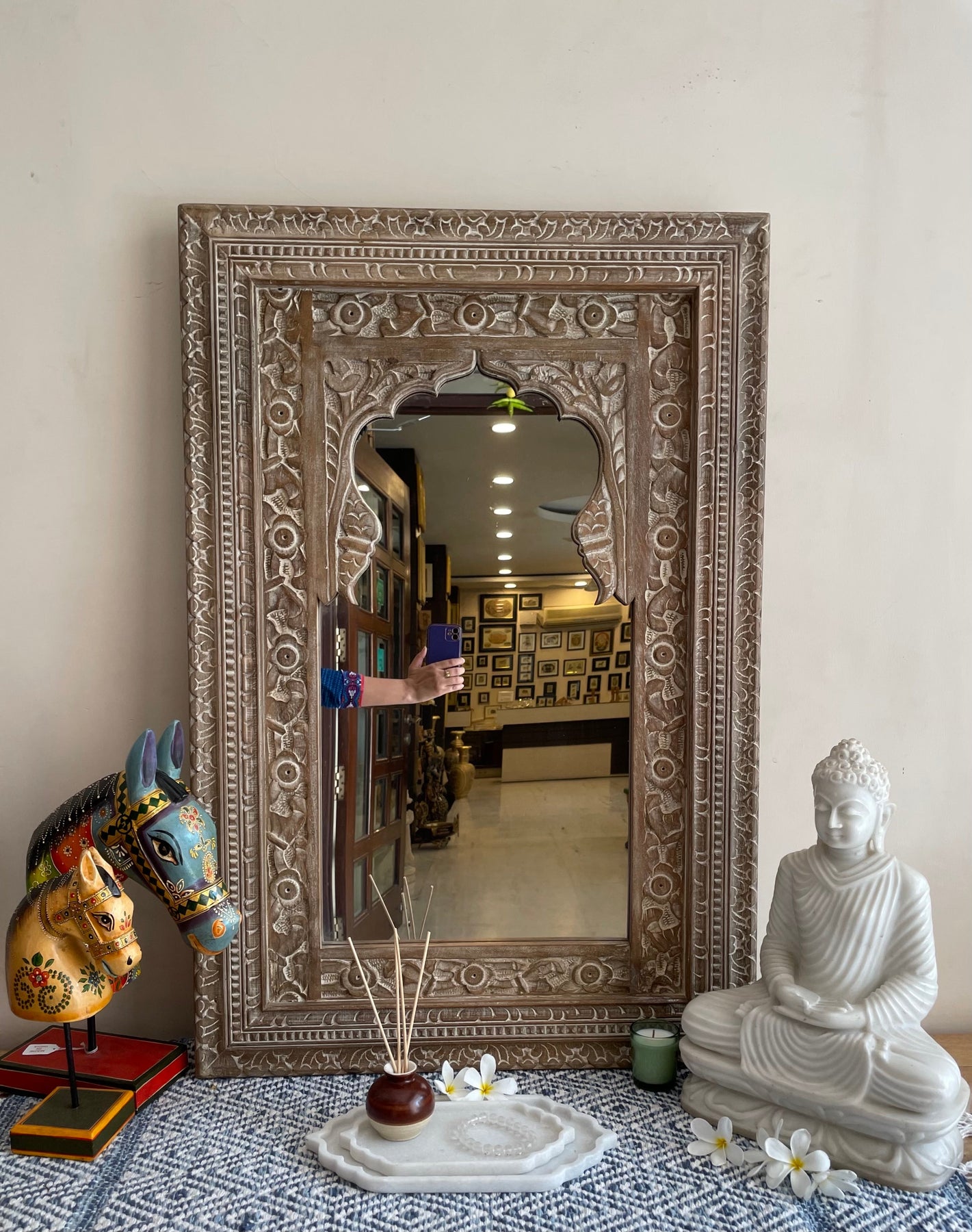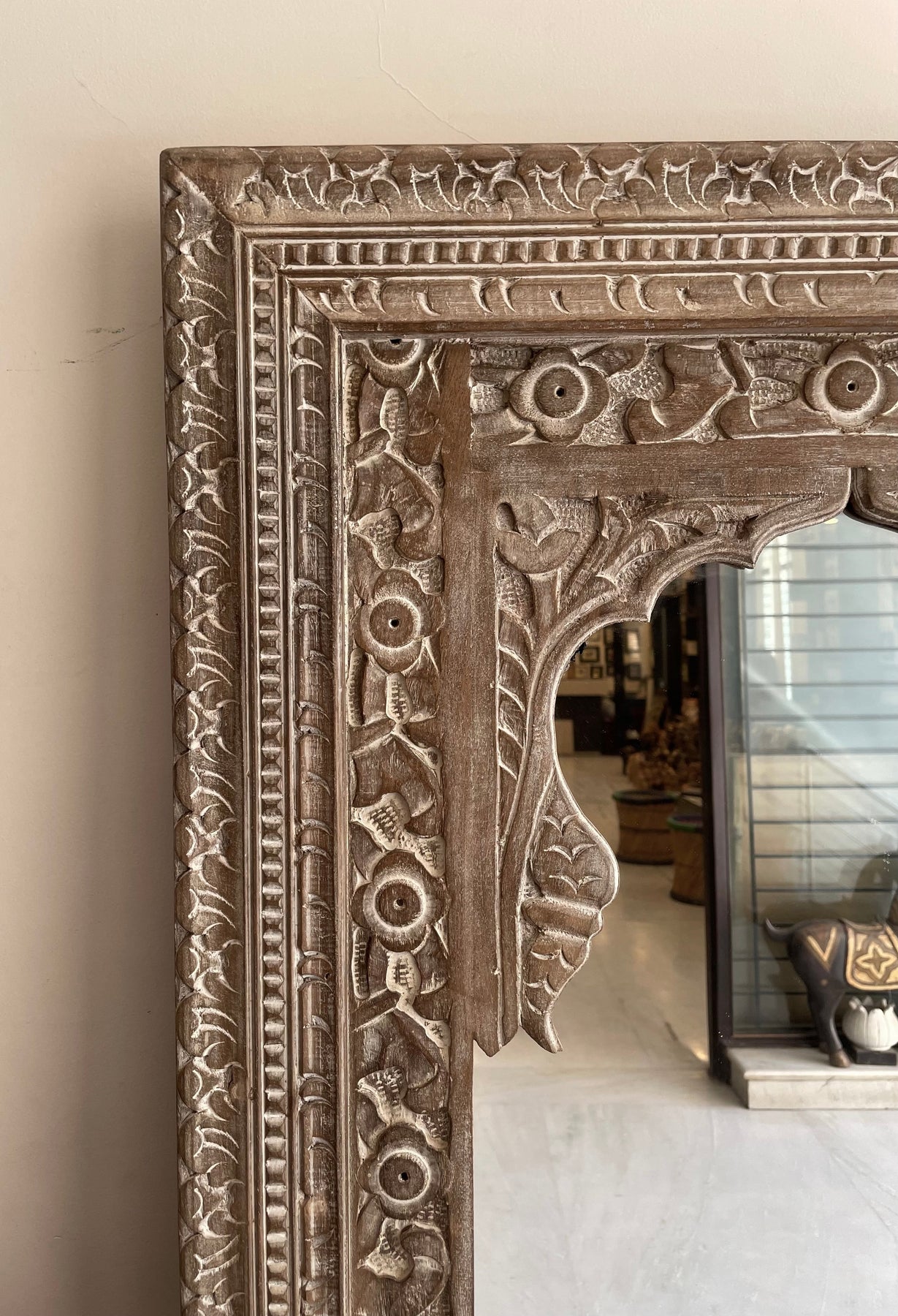 Enhance your space with this beautifully carved Distressed Jharokha wooden frame!