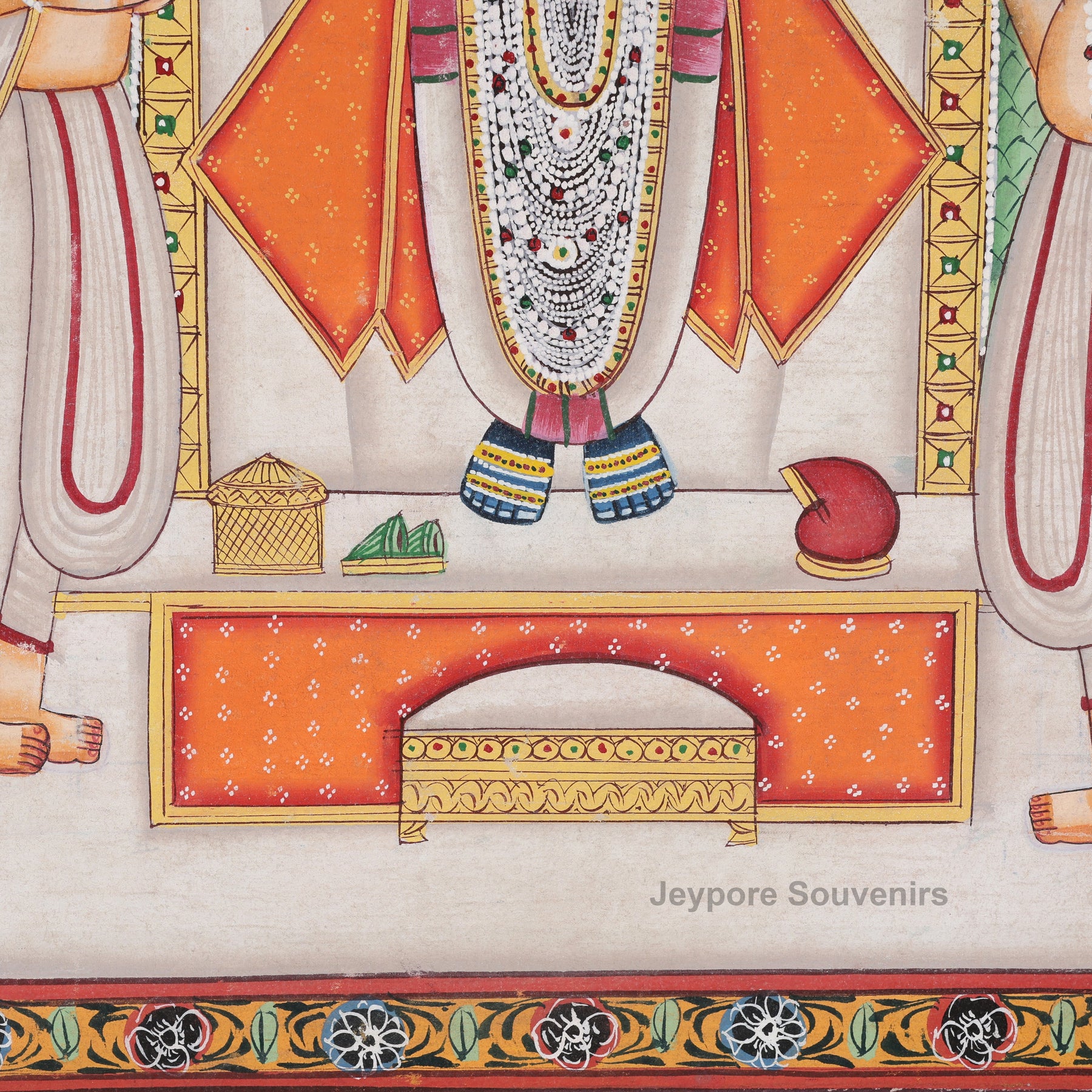 The two priests represent dedicated temple attendants offering daily seva to Lord Shrinathji. Their presence emphasizes the values of humility, devotion, and the sacred bond between the deity and his devotees.