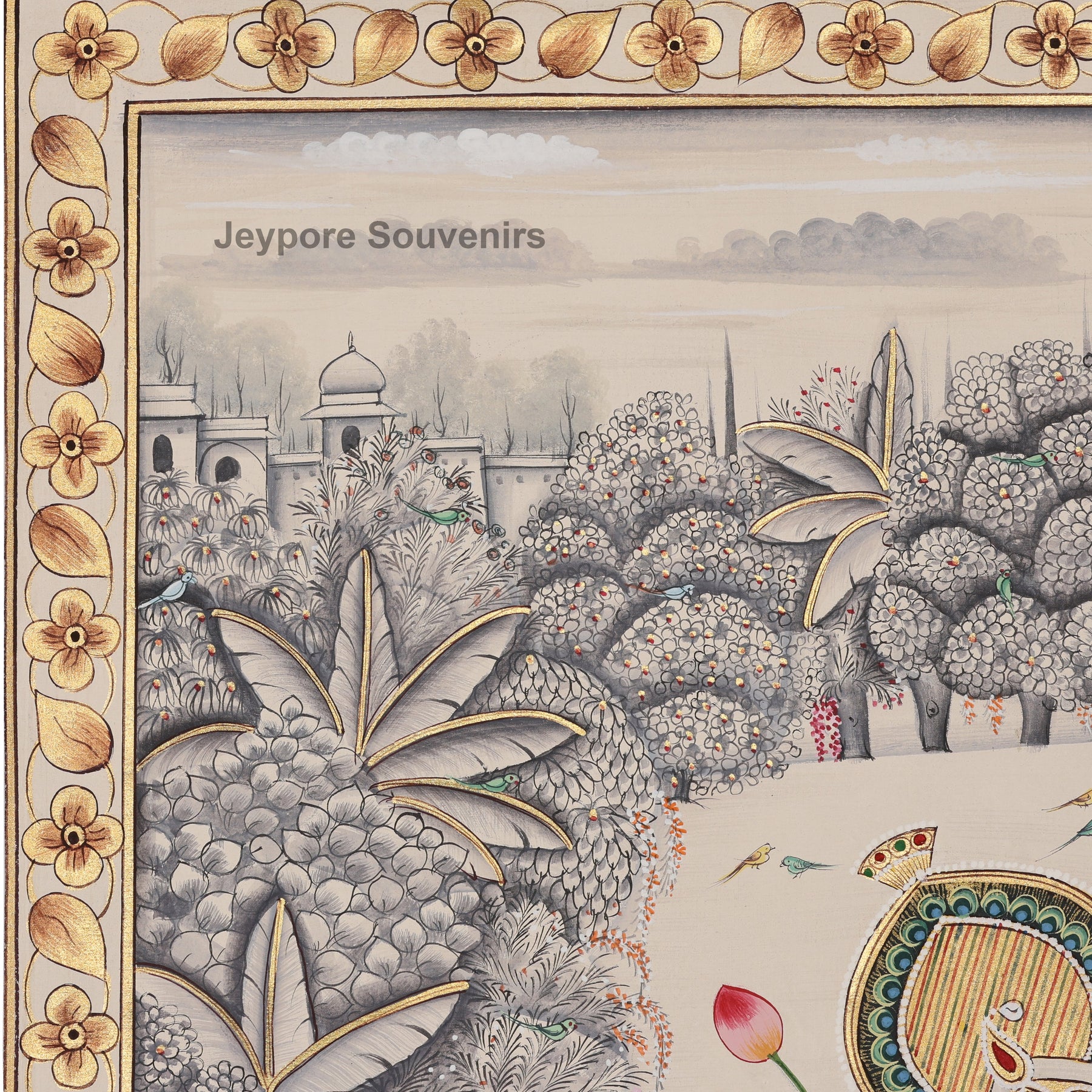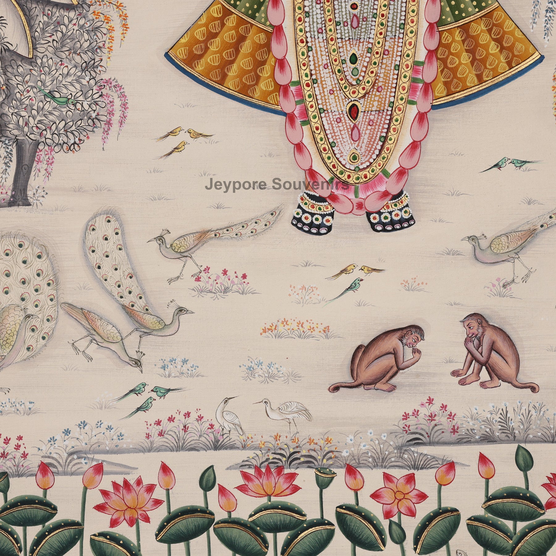 Shrinath Ji Pichwai paintings on silk are valued for their luxurious texture, fine detailing, and traditional Nathdwara artwork style. Silk enhances color vibrance and highlights intricate hand-painted elements, making the piece visually rich and long-lasting.
