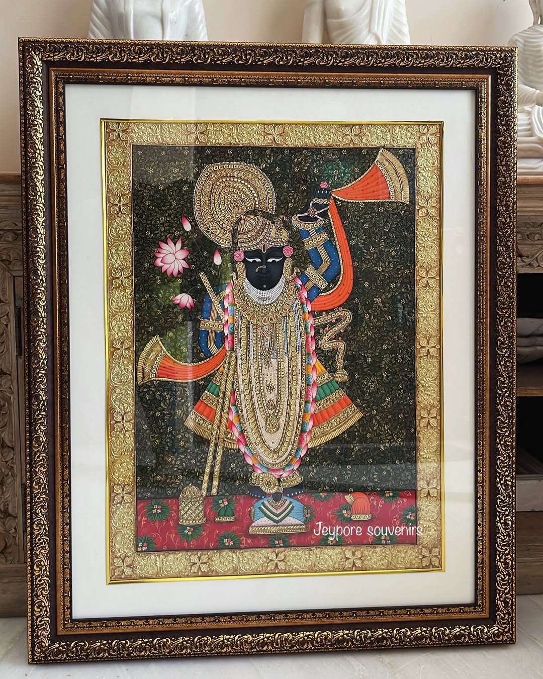 Tanjore style Lord Shrinathji painting with Real gold leaf work | Handmade by Indian Craftsman