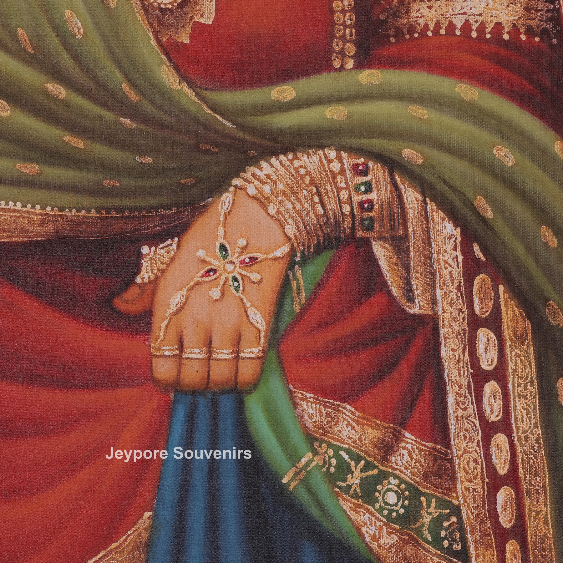 | Color & Finish | Colors are Deep Indigo Blue, Lush Greens, Saffron Yellows, Violet/Pink, and Ruby Red |