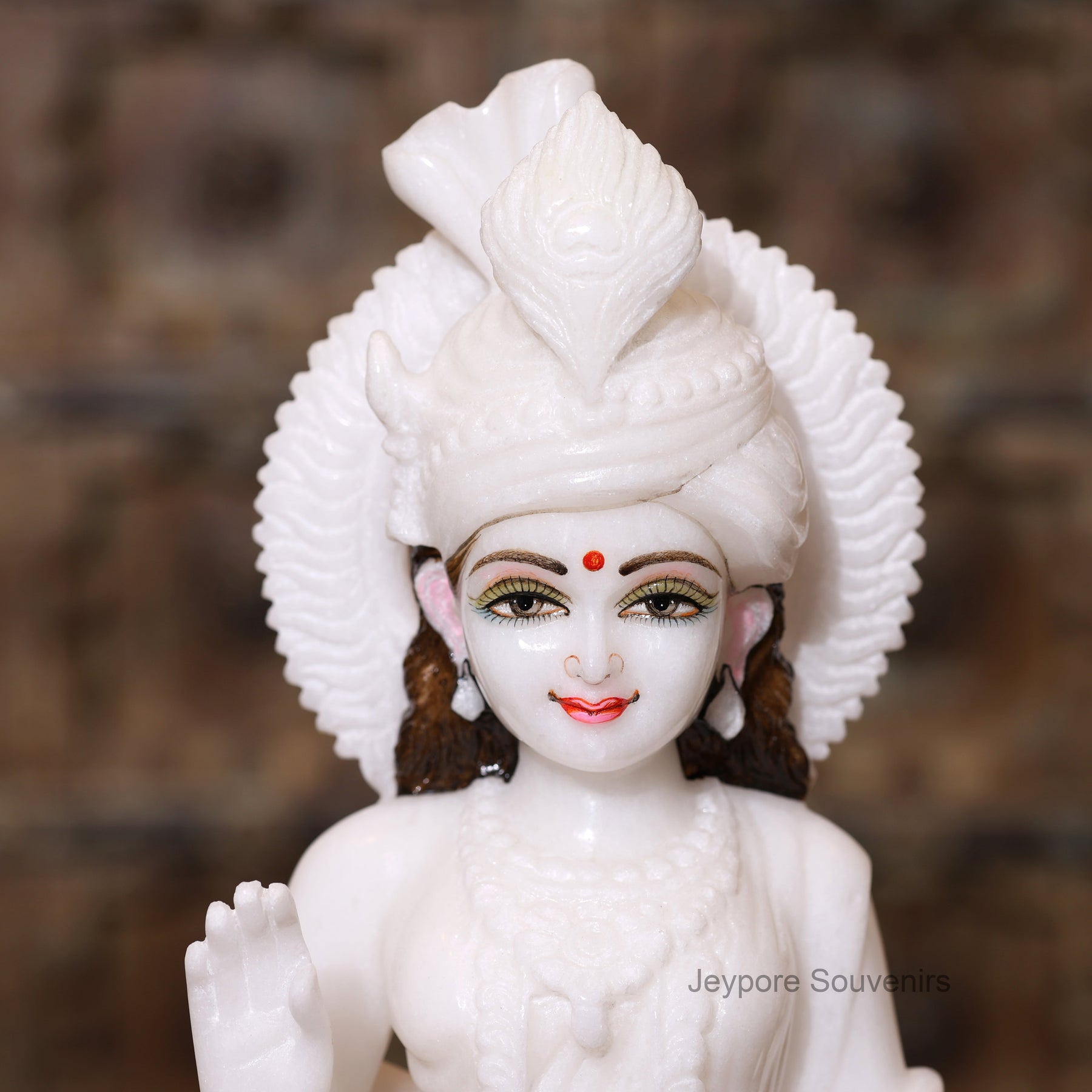 This idol is handcrafted from authentic Makrana marble by skilled Indian artisans, ensuring every piece is one-of-a-kind. The smooth finish and divine detailing embody the essence of spiritual craftsmanship.