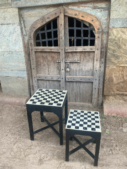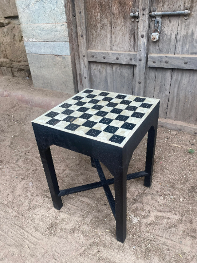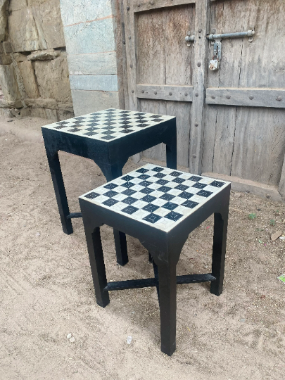Black and White Stool table / Bed Side Night stand table with Inlay work