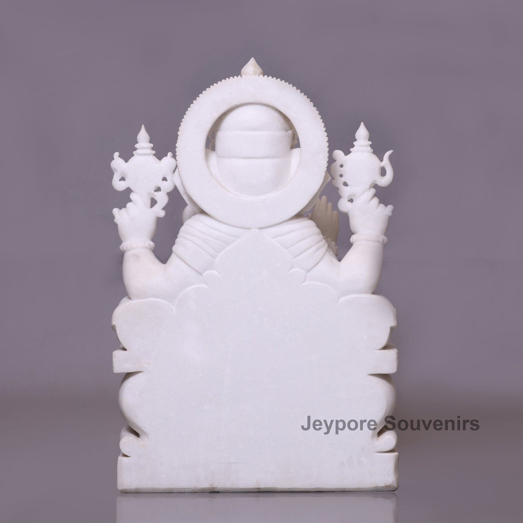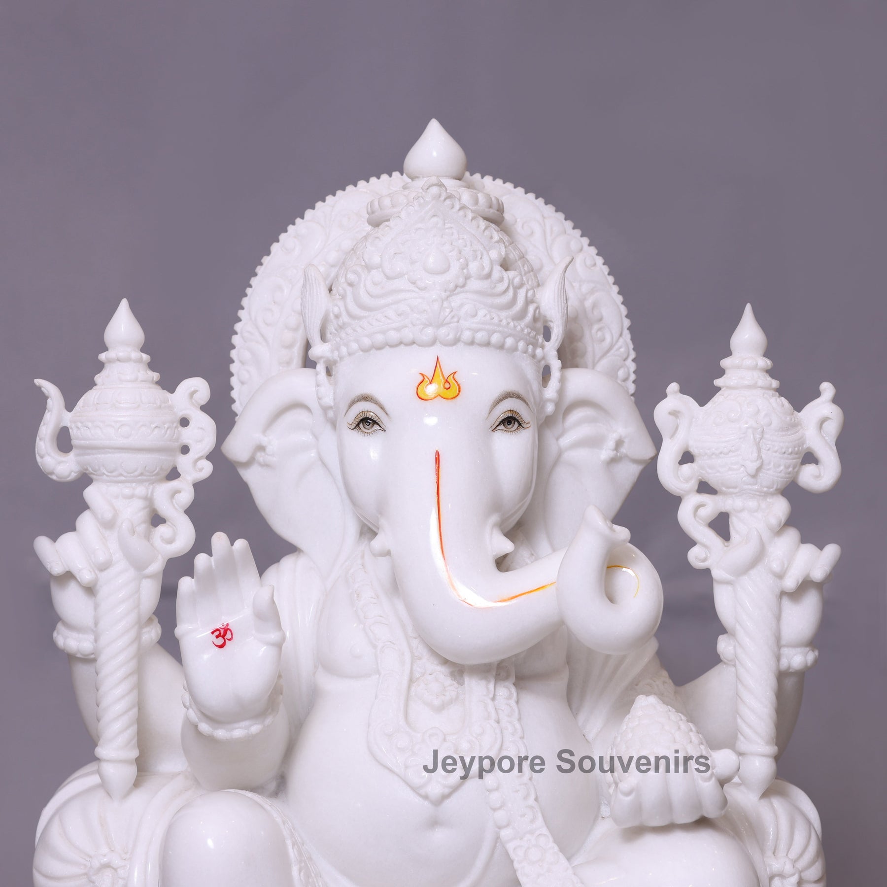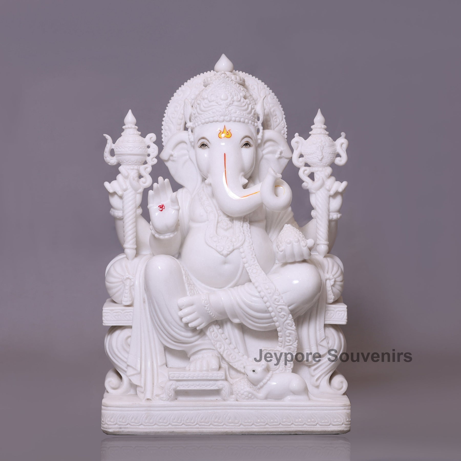 Bring home divine blessings with this stunning 30-inches white marble Lord Ganesha idol, hand-sculpted by Jeypore Souvenirs’ master craftsmen. Ideal for pooja rooms, home entrances, or festive celebrations. Premium quality, intricate details it is perfect for removing obstacles and inviting prosperity!