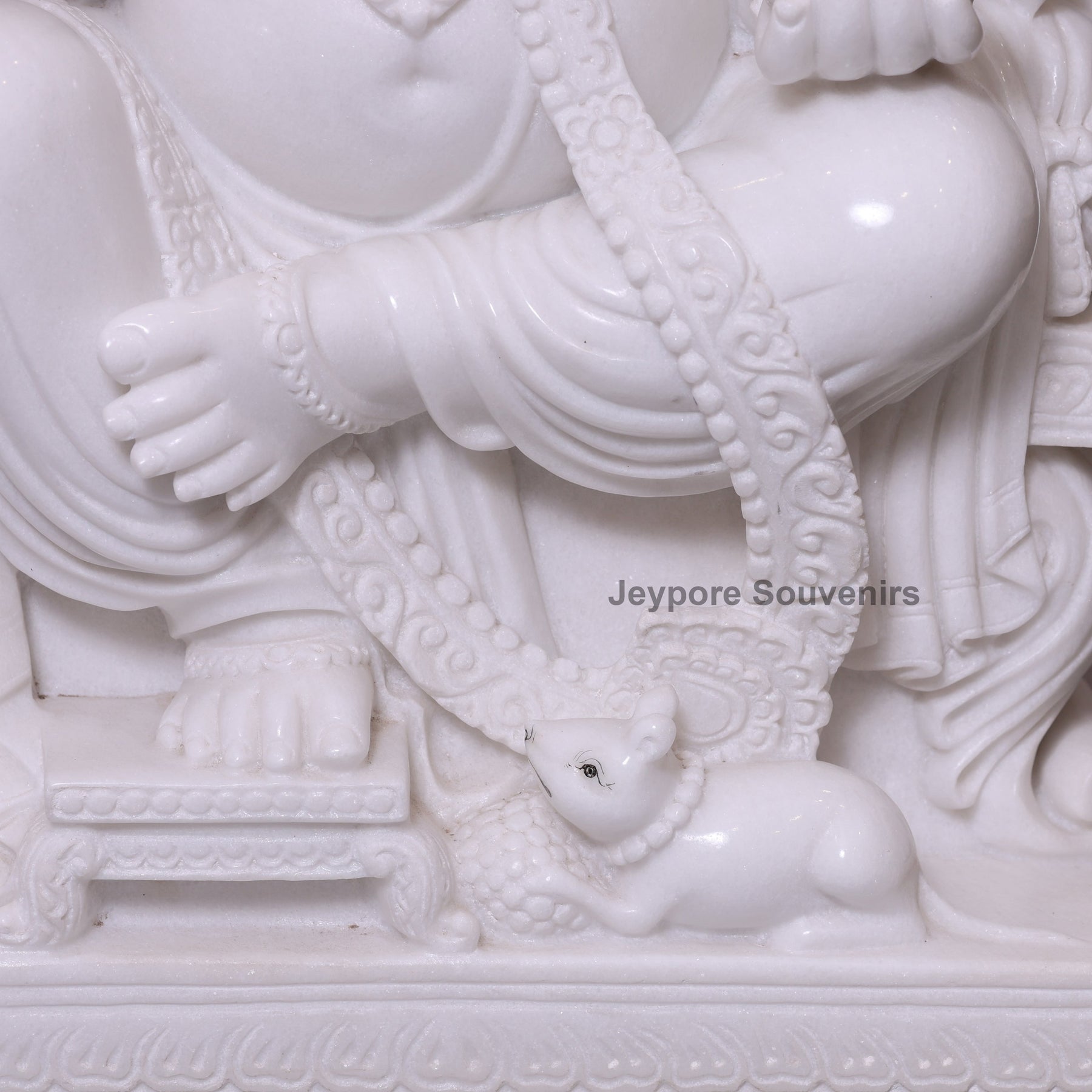 This beautiful Lord Ganesha idol is made from premium-quality pure white marble and intricately adorned with real gold leaf work for a divine and luxurious appearance.