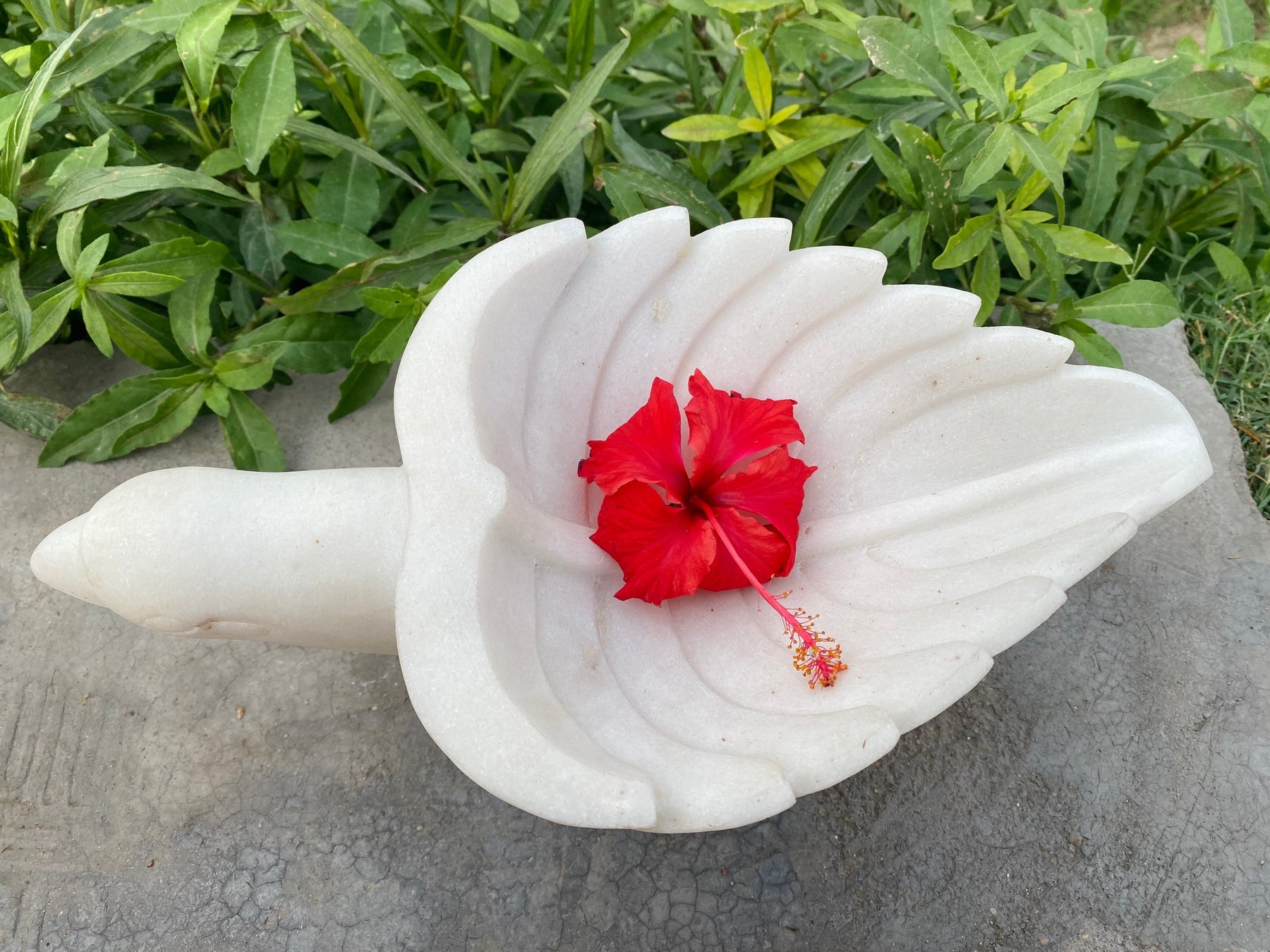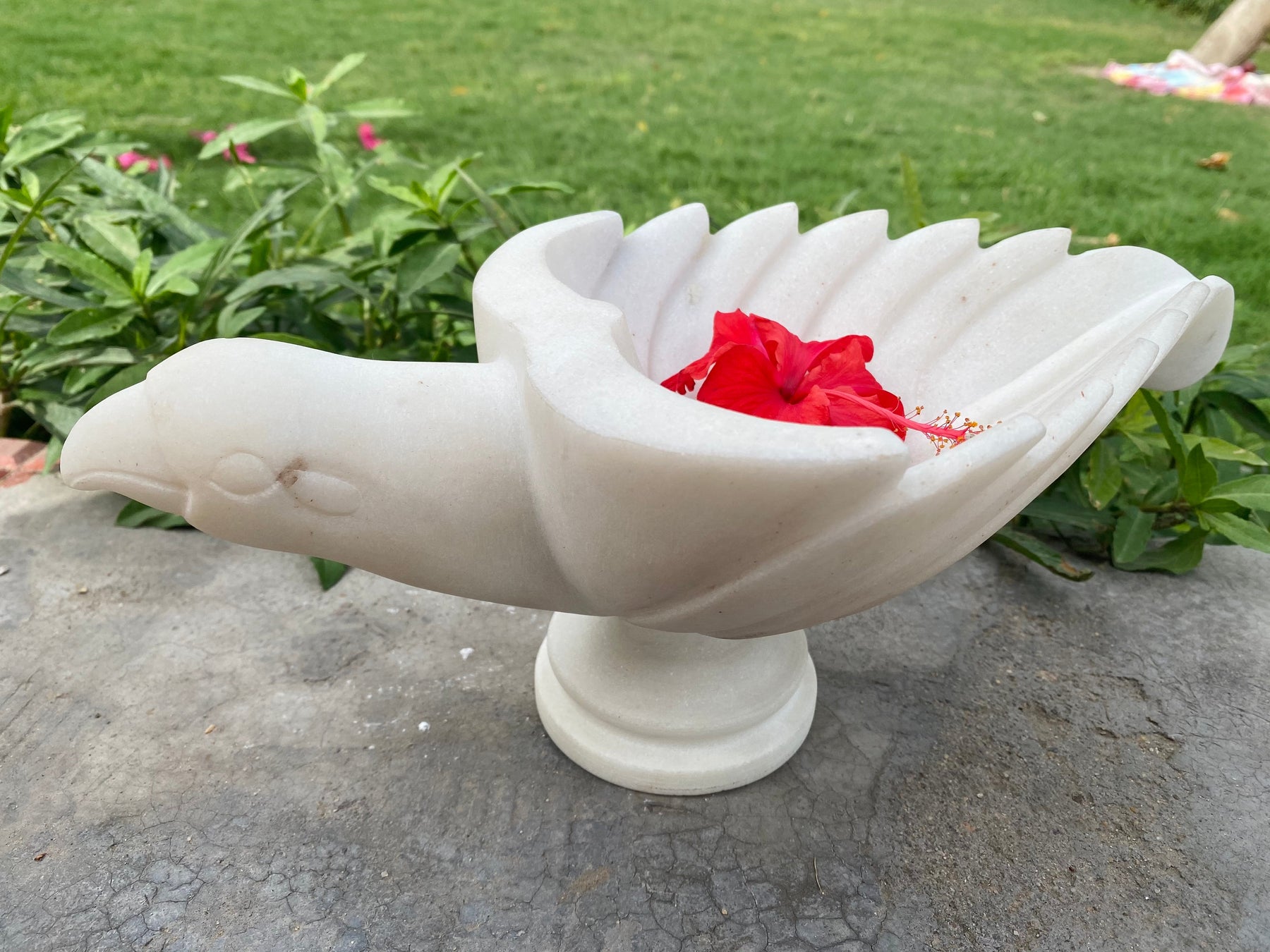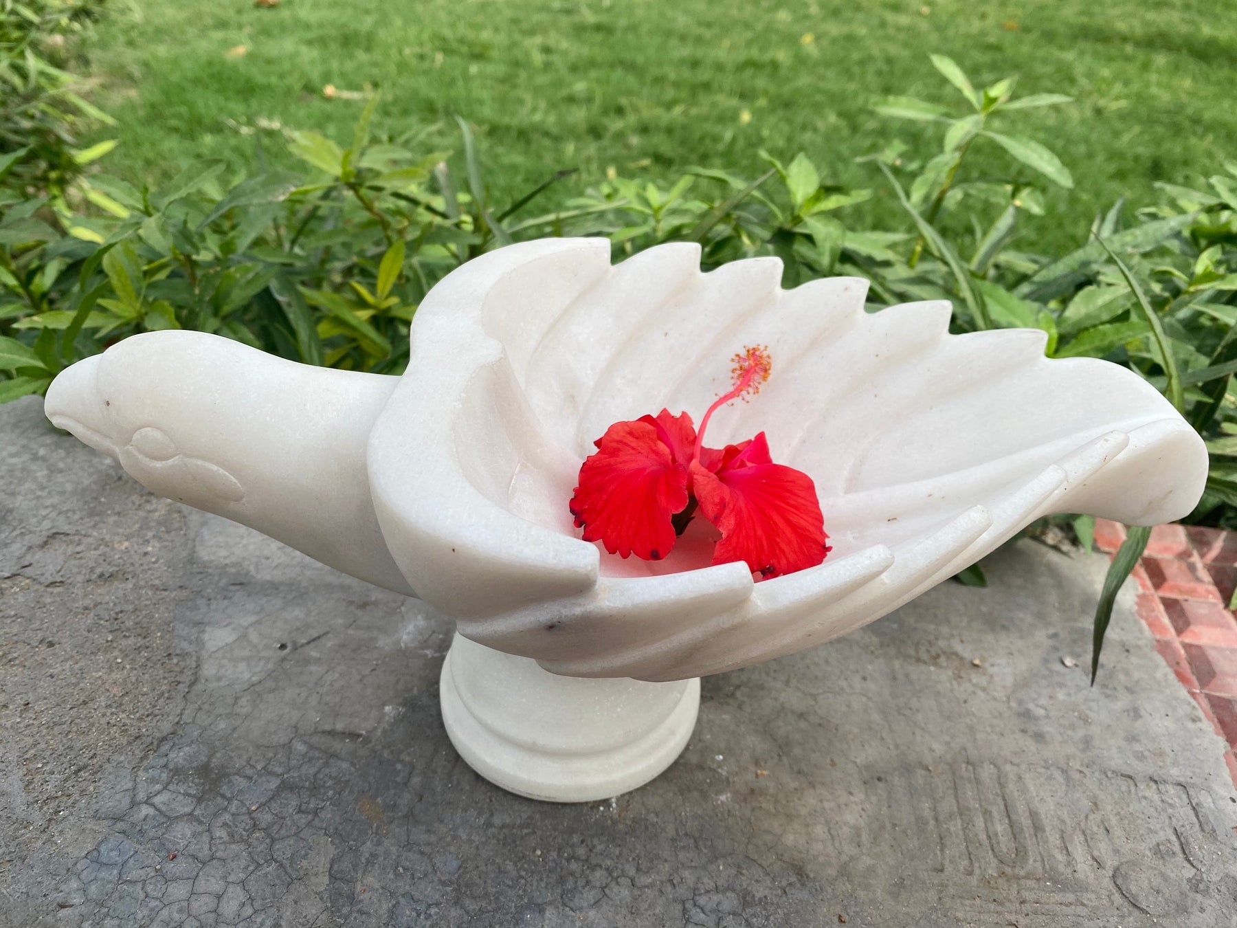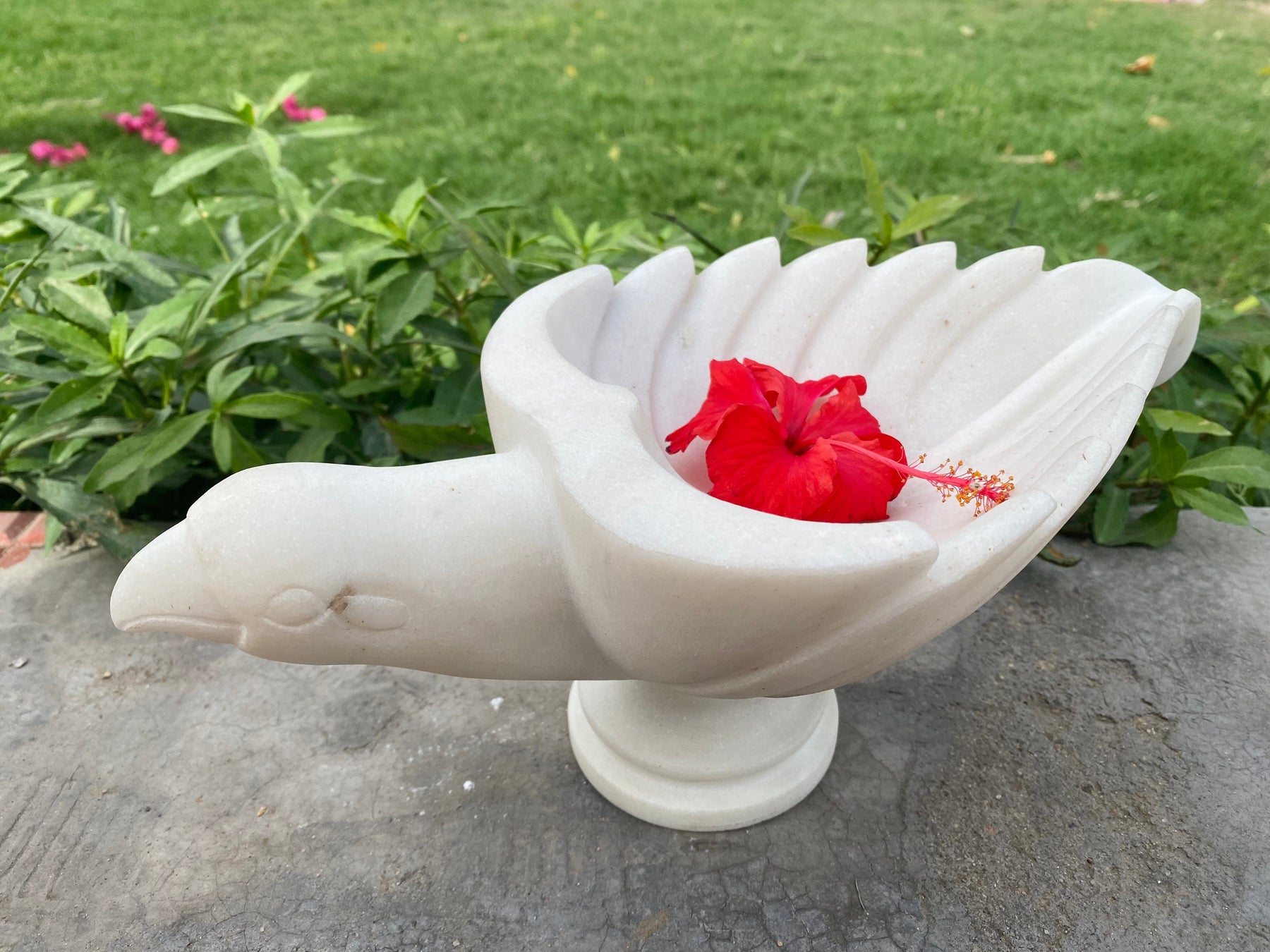 Bird shaped marble urli with intricate detailing and carving which can be used as a decorative accent that instantly sanctifies your space. Often observed with flowers or candles floating in a pool of water to welcome guests at home, urlis are quite rare. Our exclusive collection of handcrafted marble urlis is sure to amaze you with its remarkable workmanship and attention to detail.