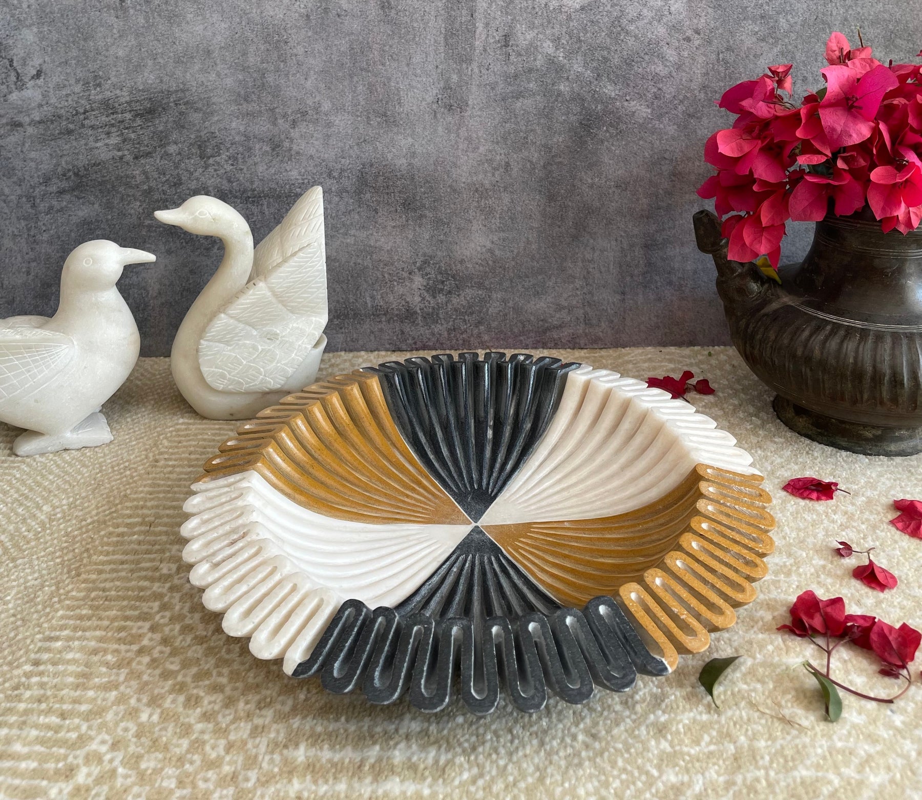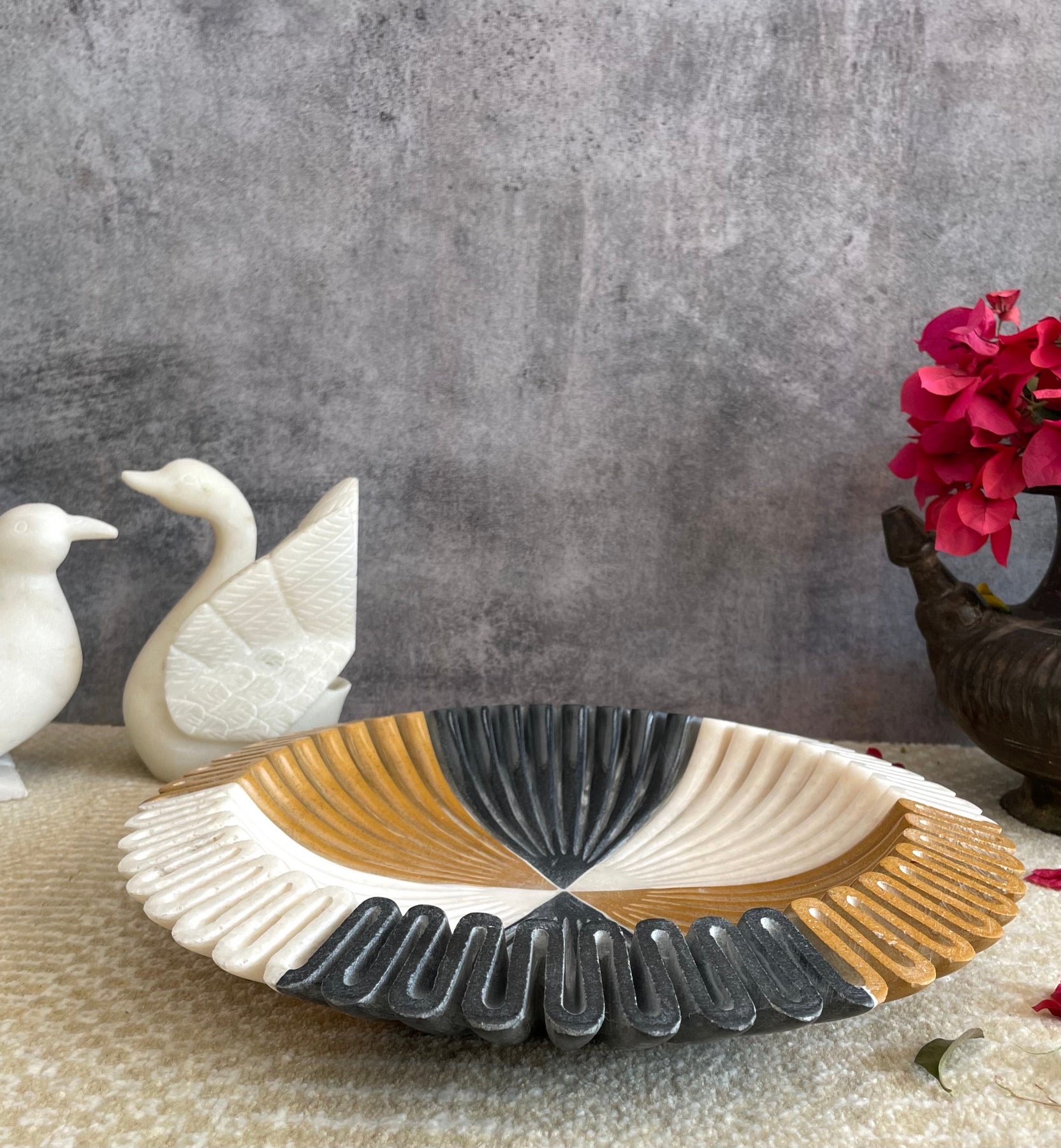 Bring home this exclusive marble bowl from the house of Jeypore Souvenirs. This unique urli/bowl is made of 4 different naturally occurring colored marbles. It surely is a head turner!