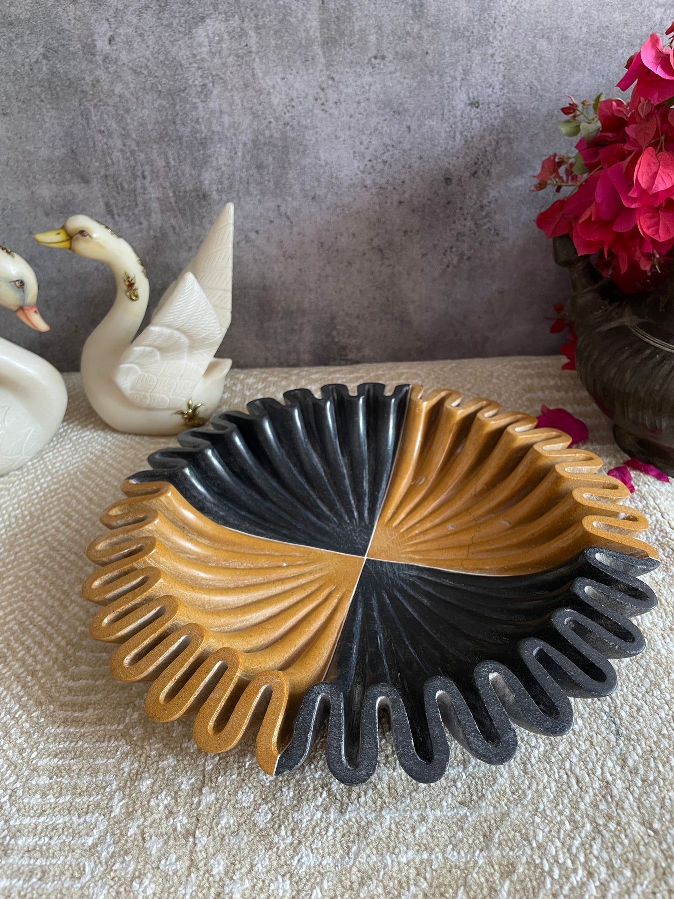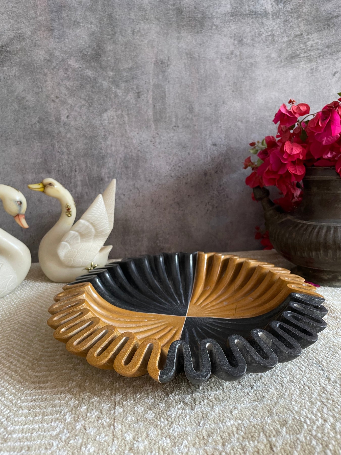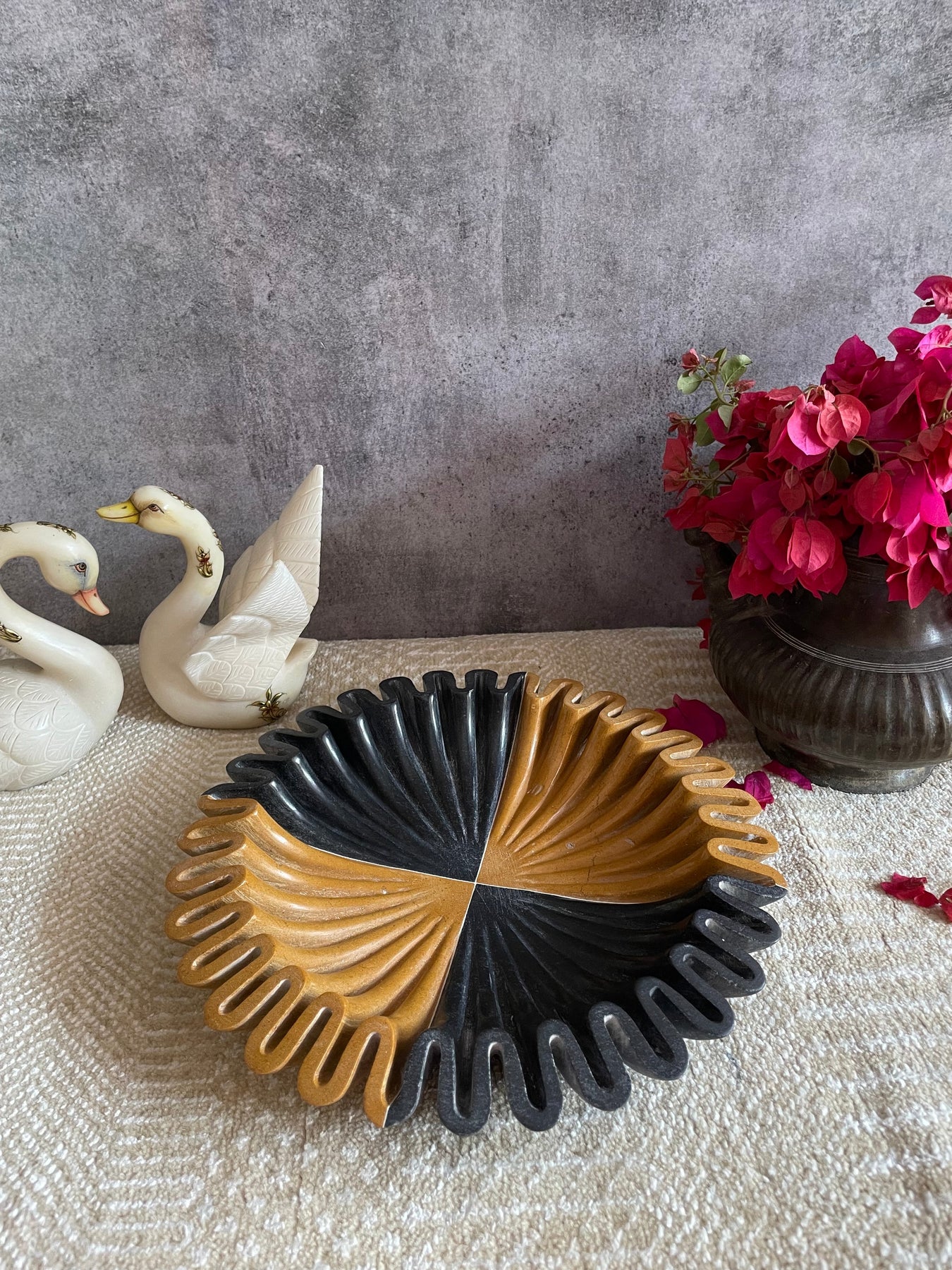 Bring home this exclusive marble bowl from the house of Jeypore Souvenirs. This unique urli/bowl is made of 2 different naturally occurring colored marbles. It surely is a head turner!