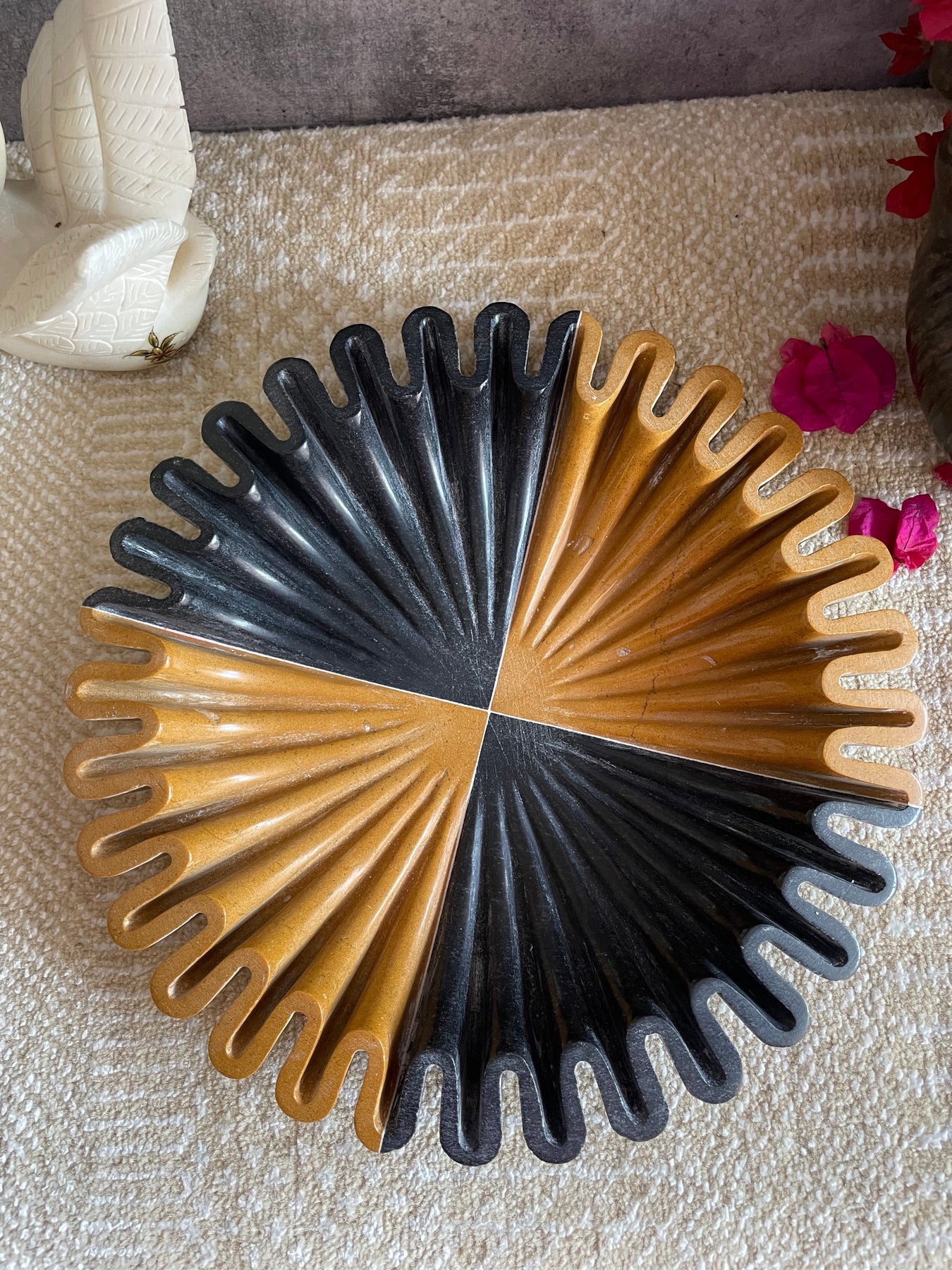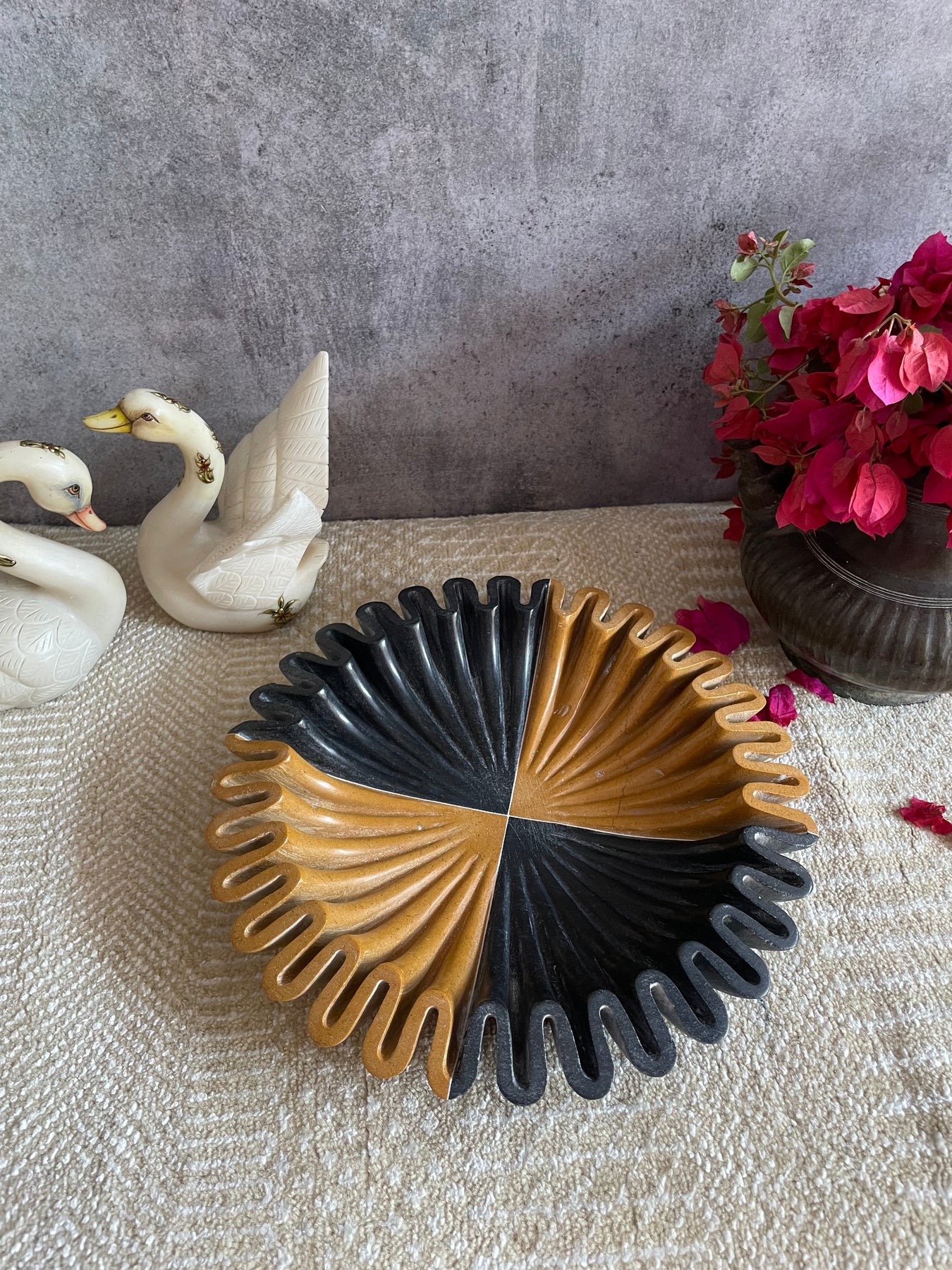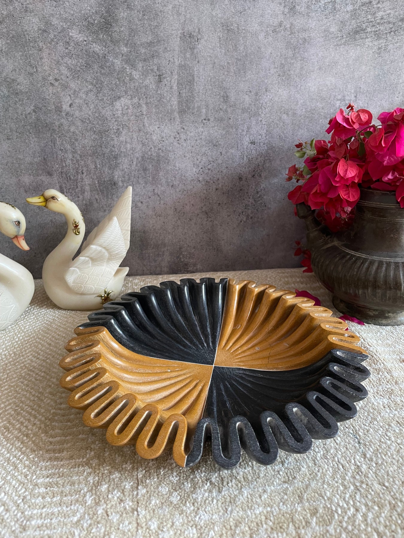Bring home this exclusive marble bowl from the house of Jeypore Souvenirs. This unique urli/bowl is made of 2 different naturally occurring colored marbles. It surely is a head turner!