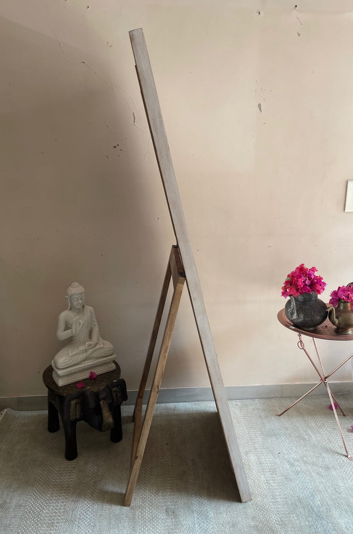 Long Standing Vanity mirror with hand carved frame along with Back Stand