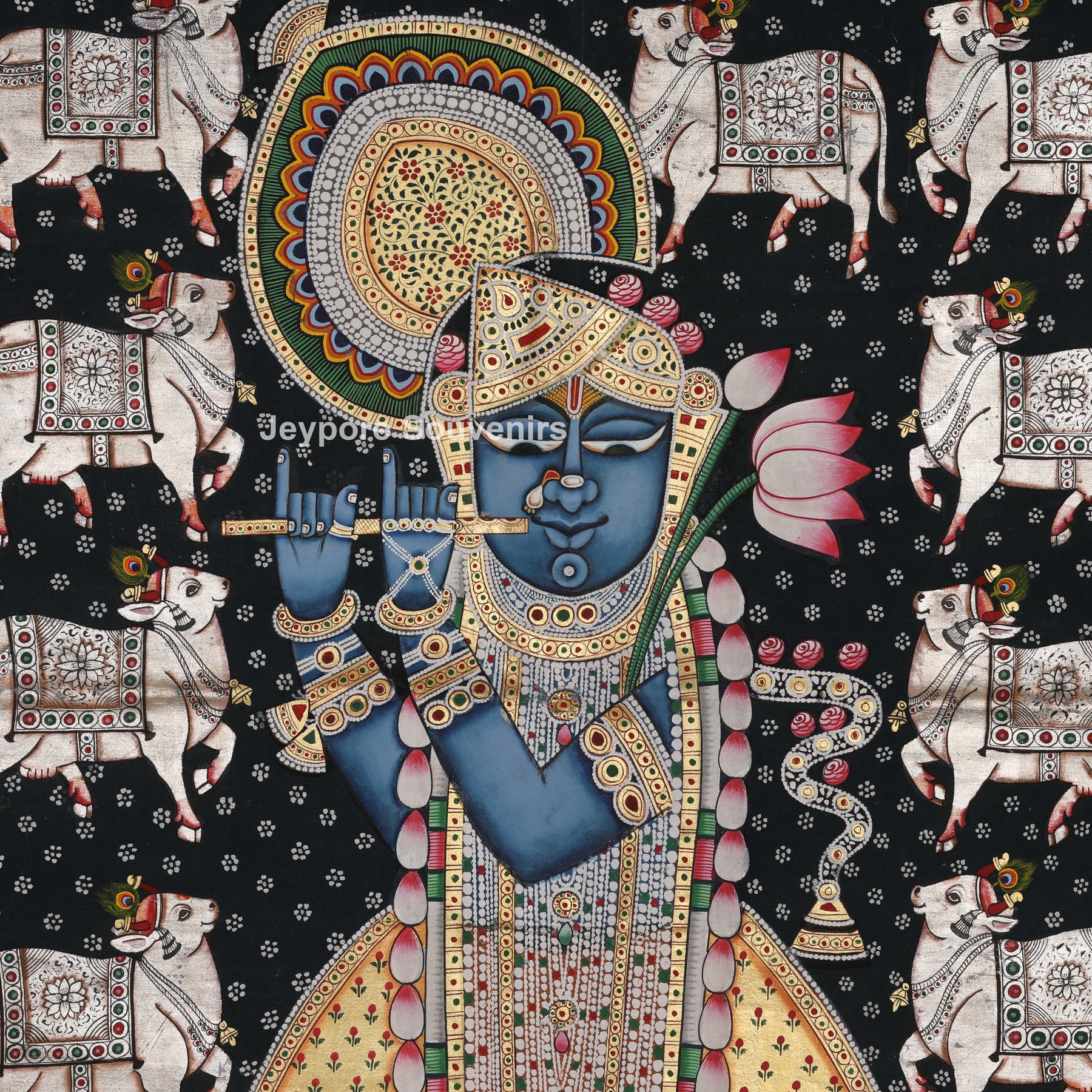 Handcrafted Pichwai of Shrinathji with Holy Cows Artwork on Cotton Fabric – Nathdwara Craft
