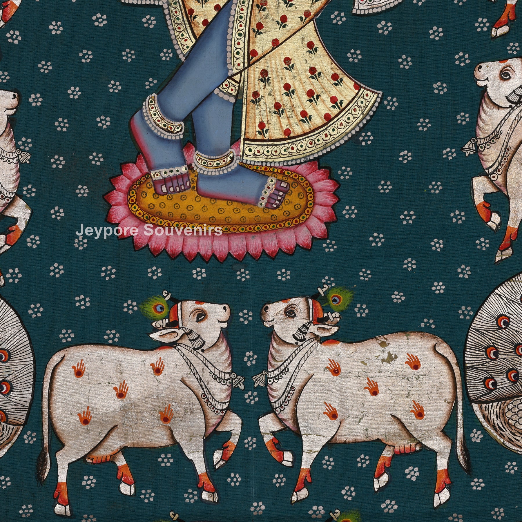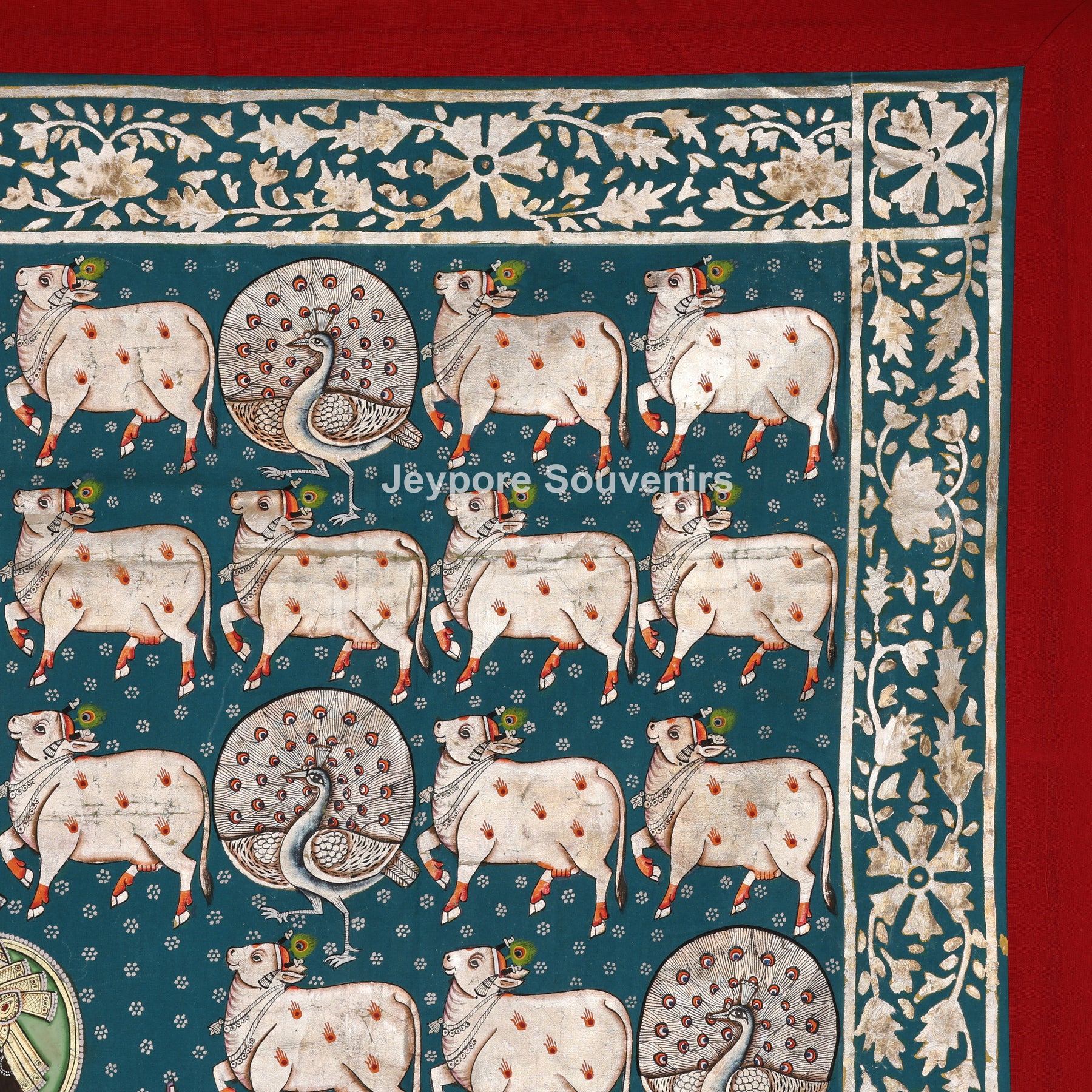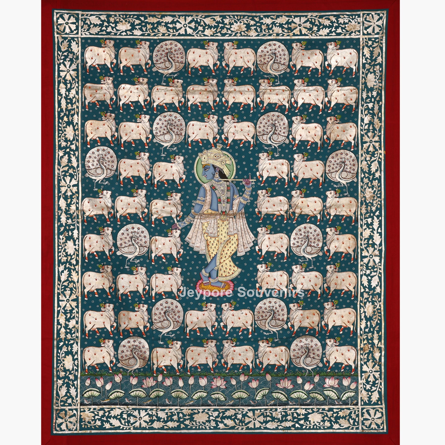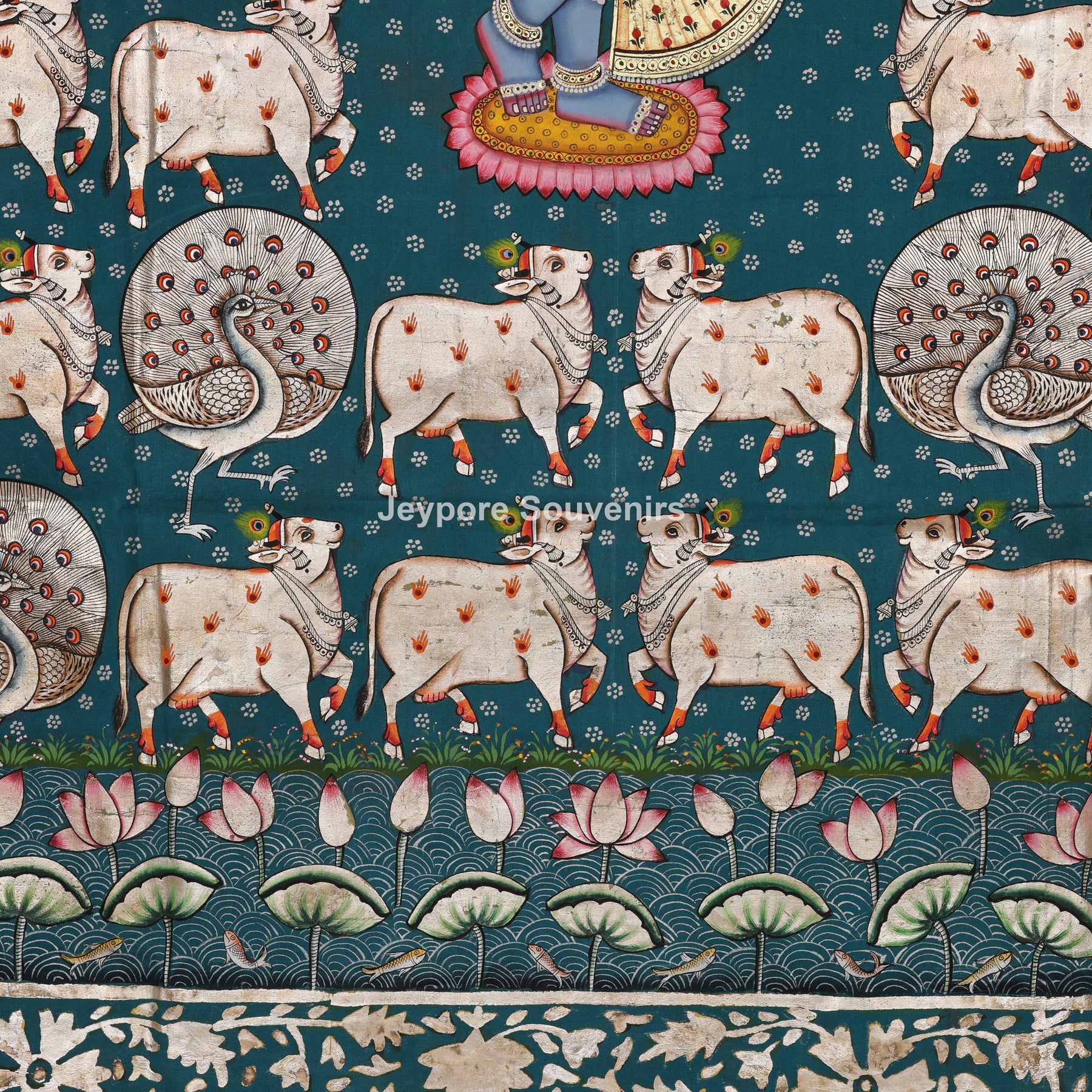 Handcrafted Pichwai Shrinathji with Divine Cows Artwork on Cotton Fabric